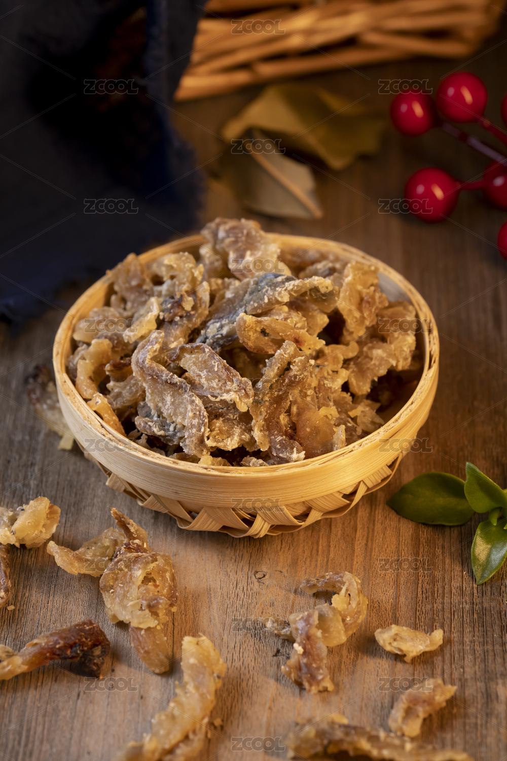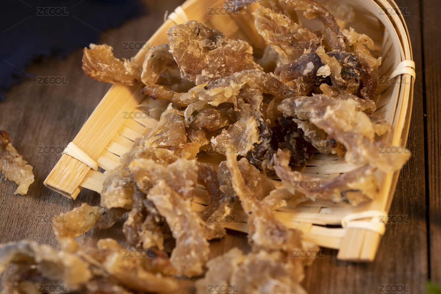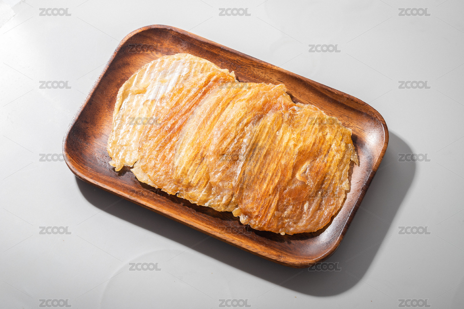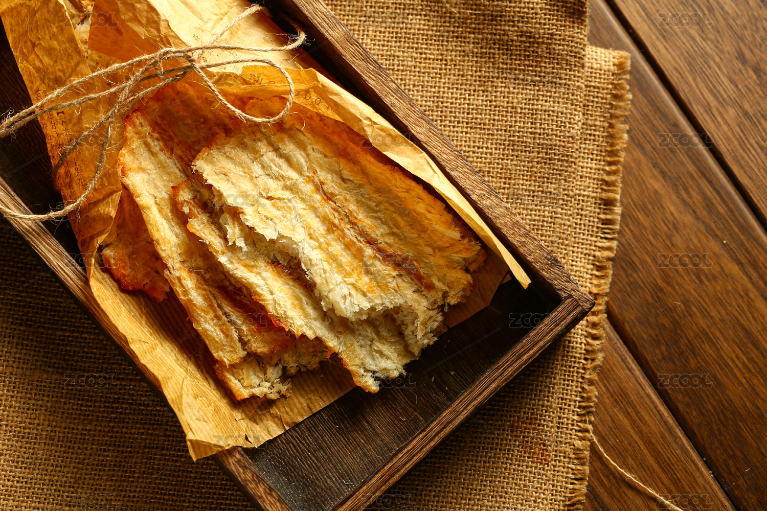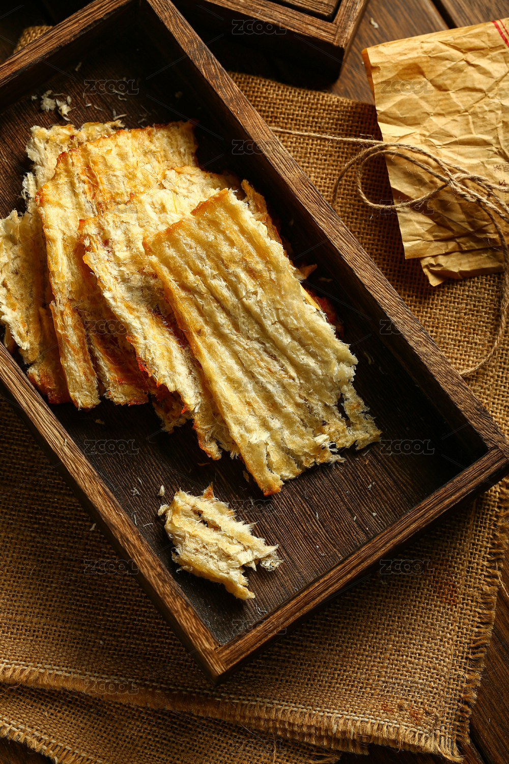 烤魚片放在木盒里