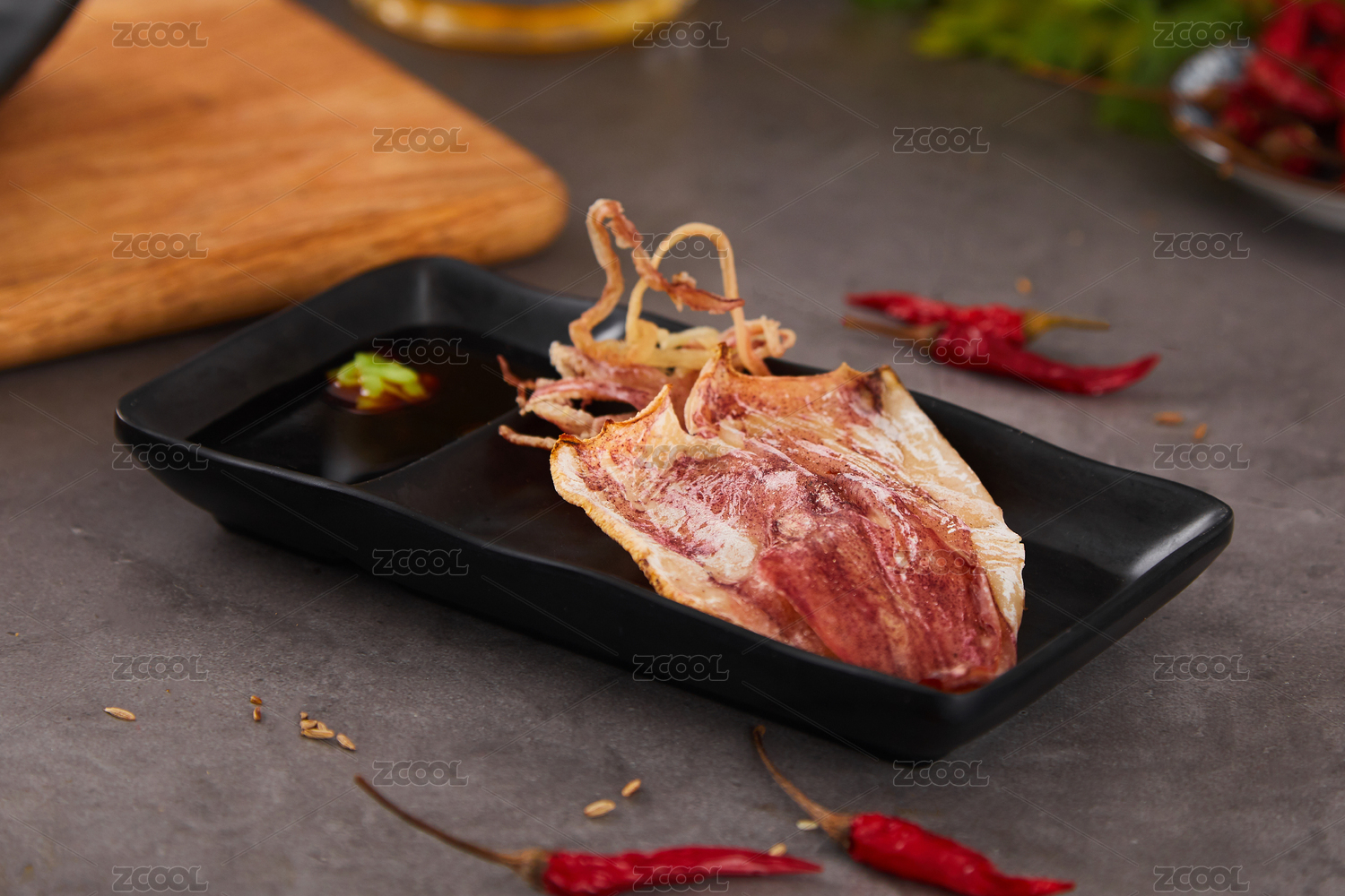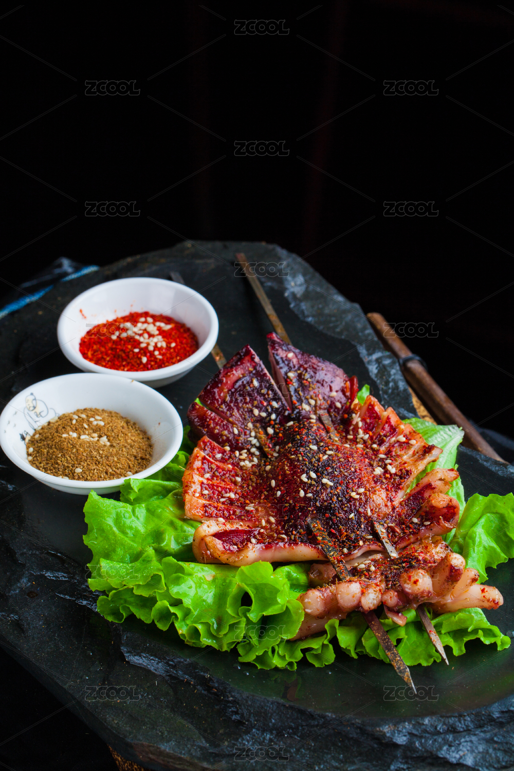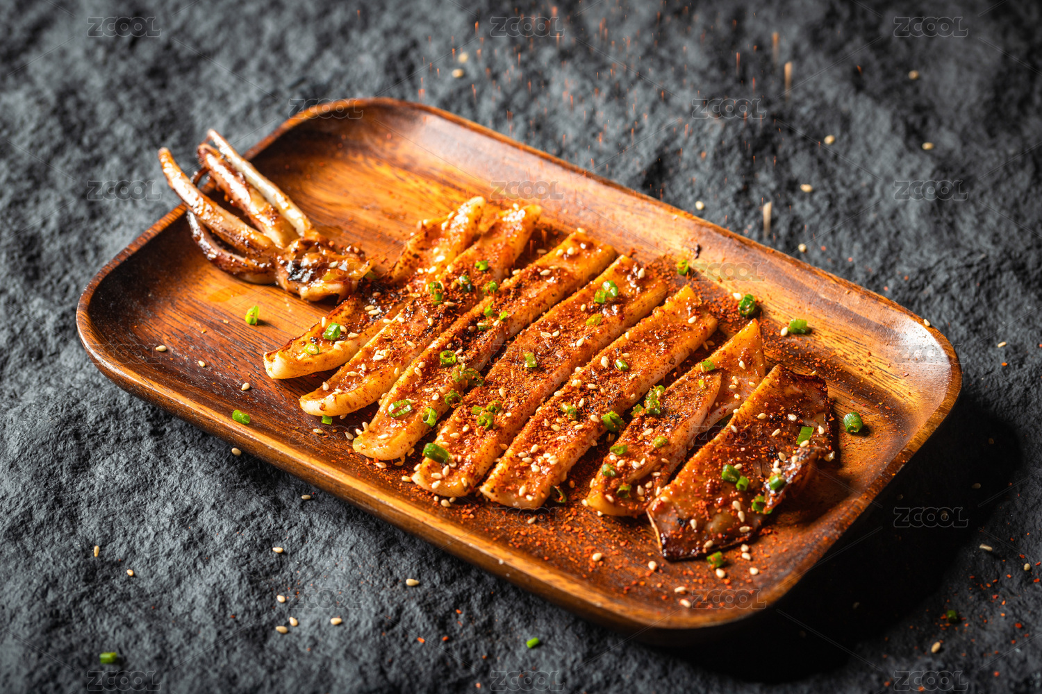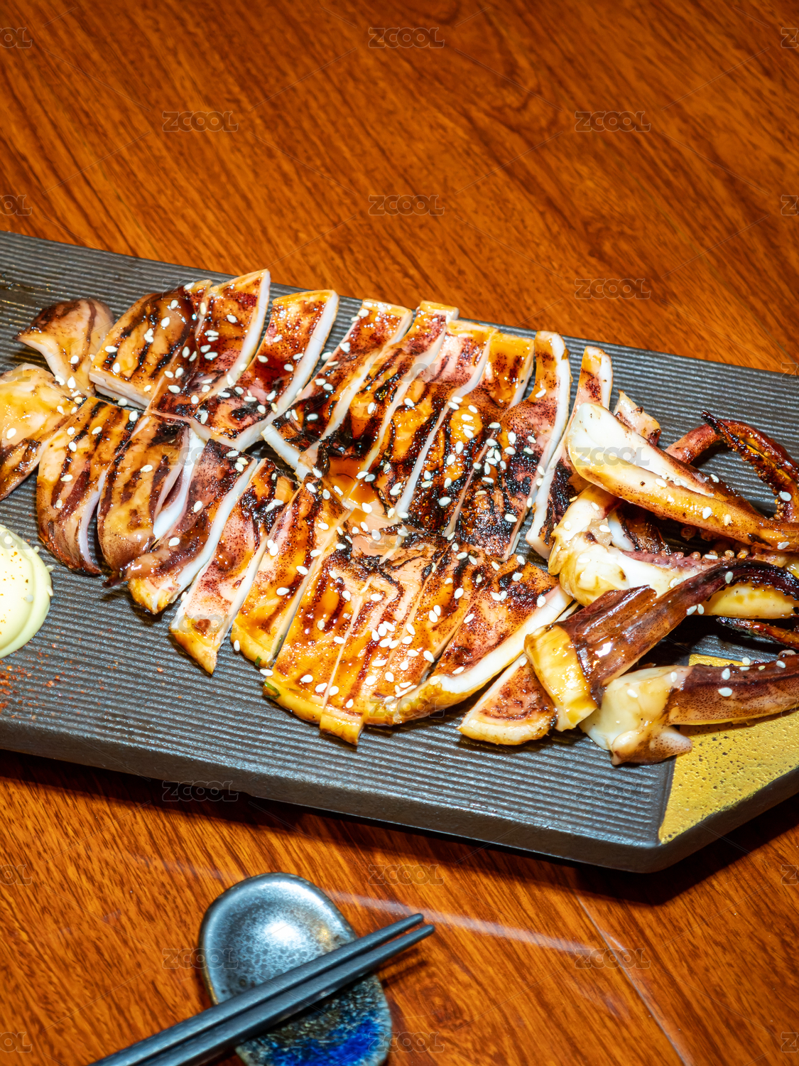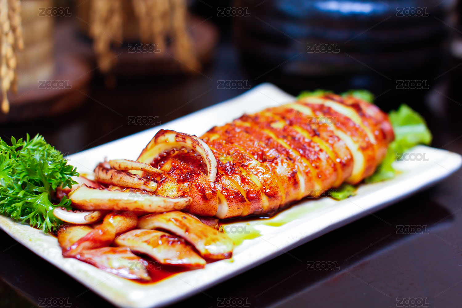 一盤烤魷魚的特寫