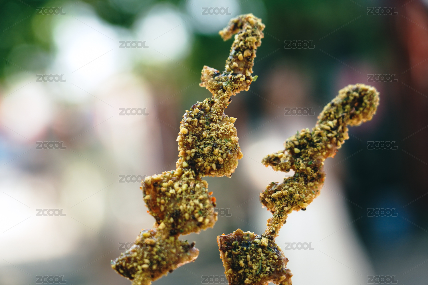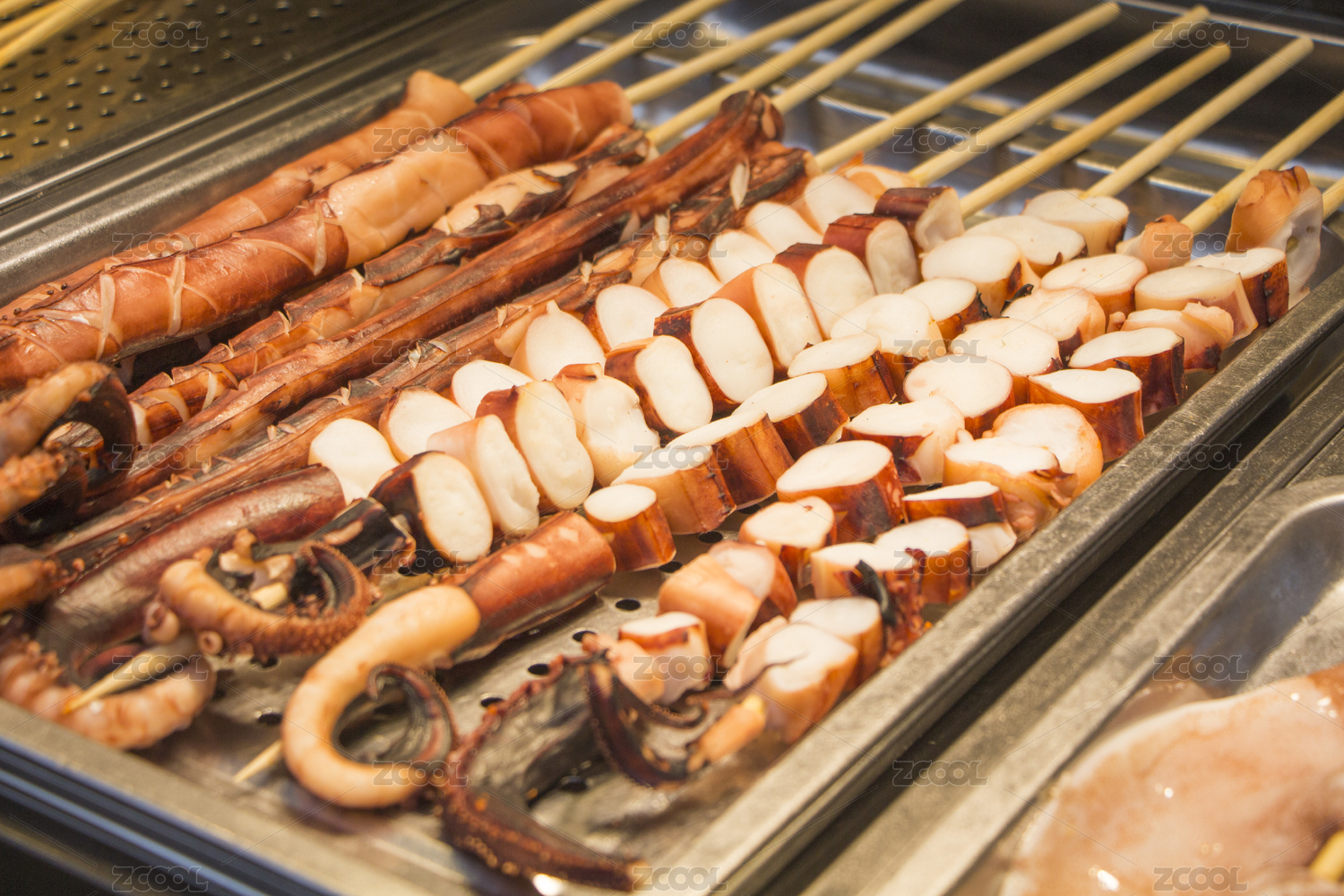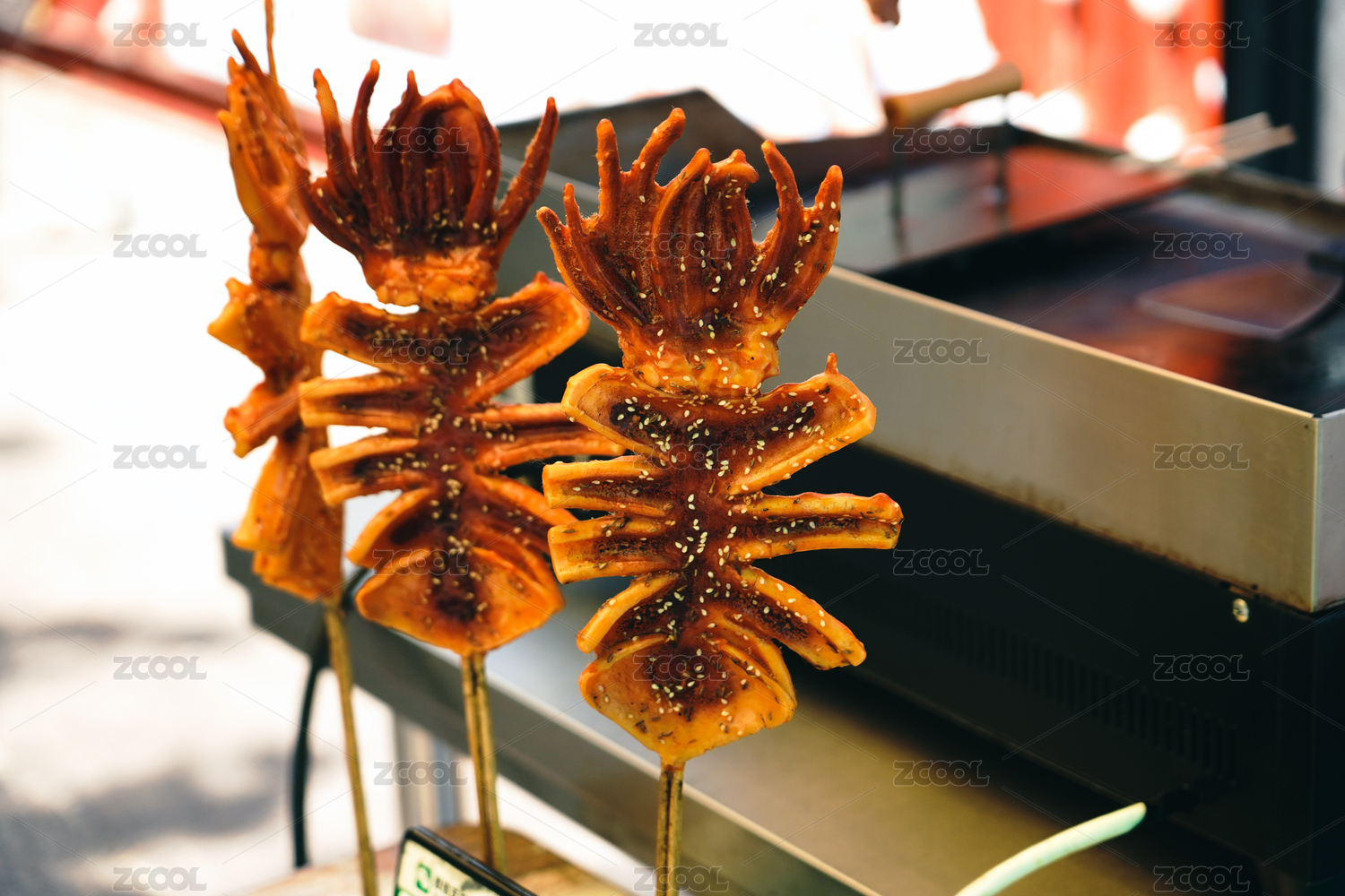 山東省青島市劈柴院美食街的烤魷魚串