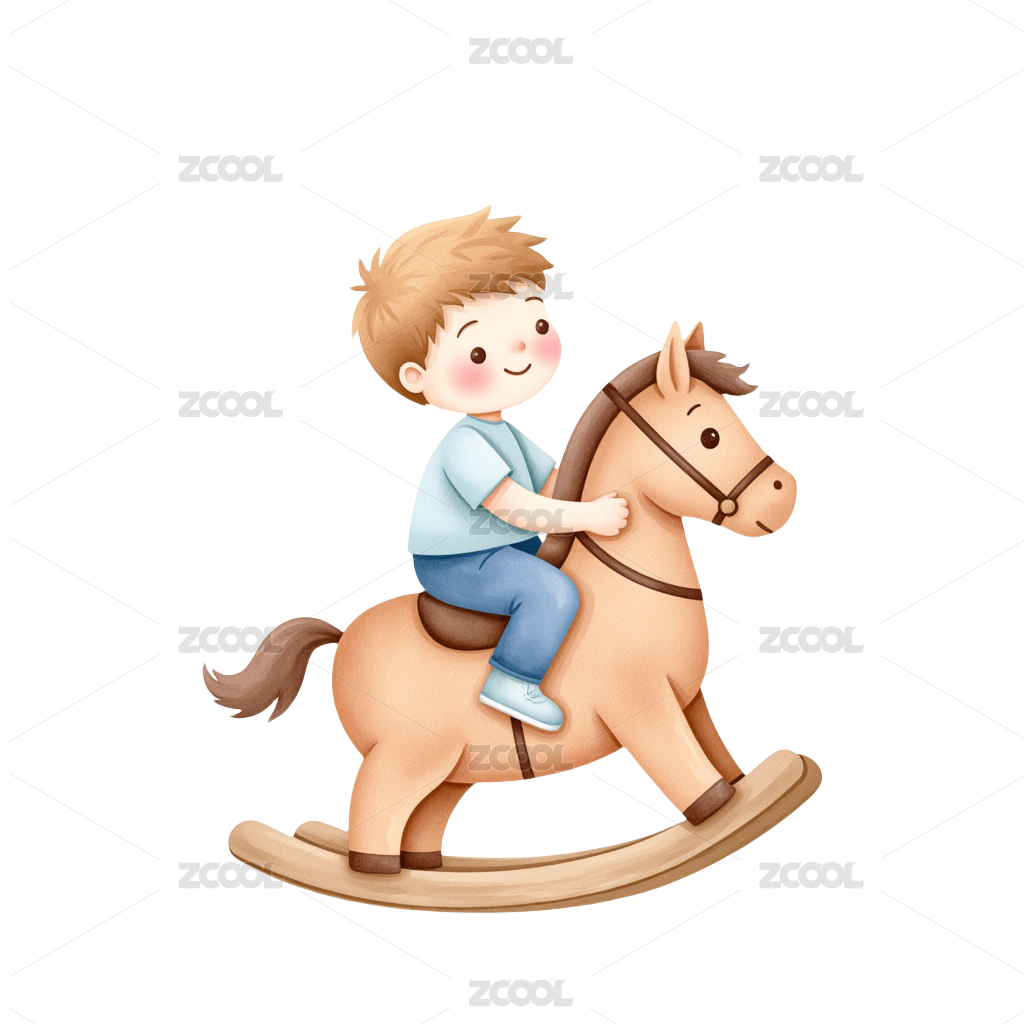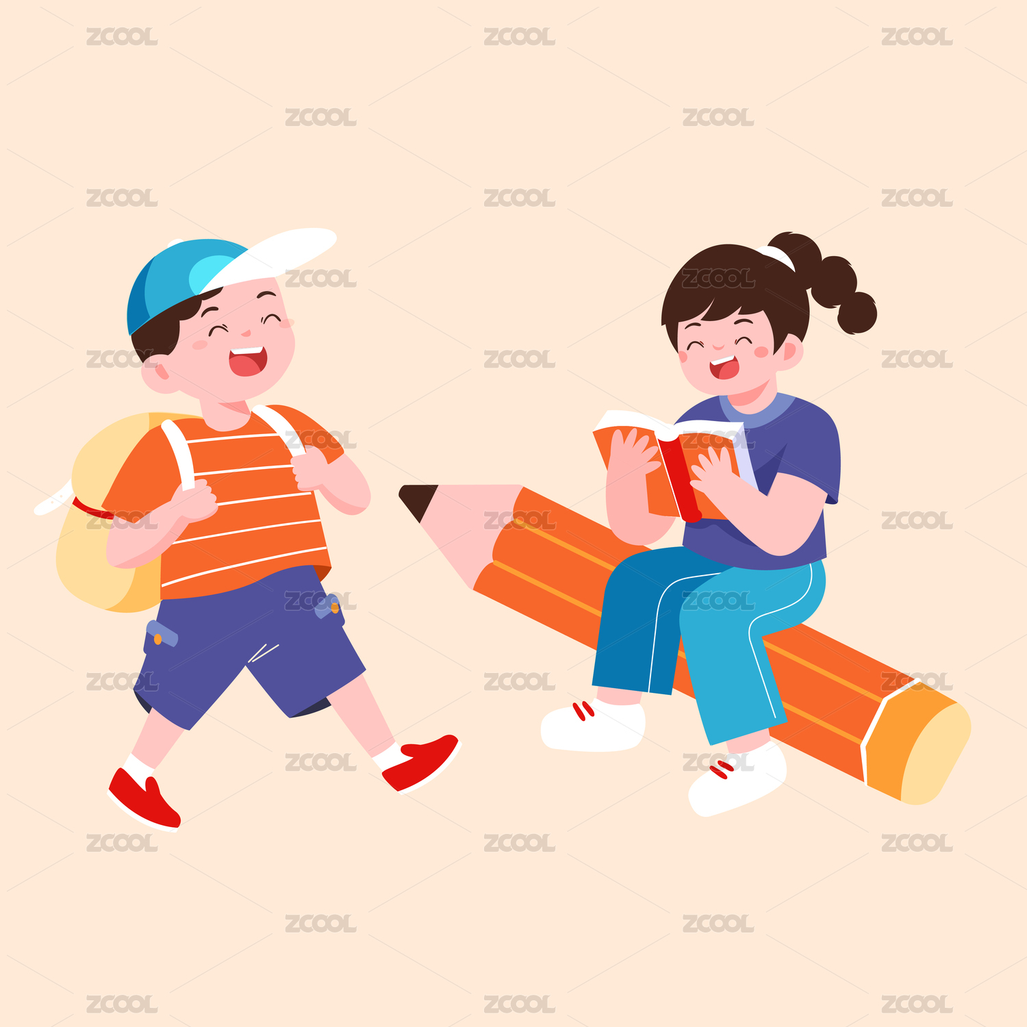夏天兒童吃西瓜清新可愛歡樂童年插畫