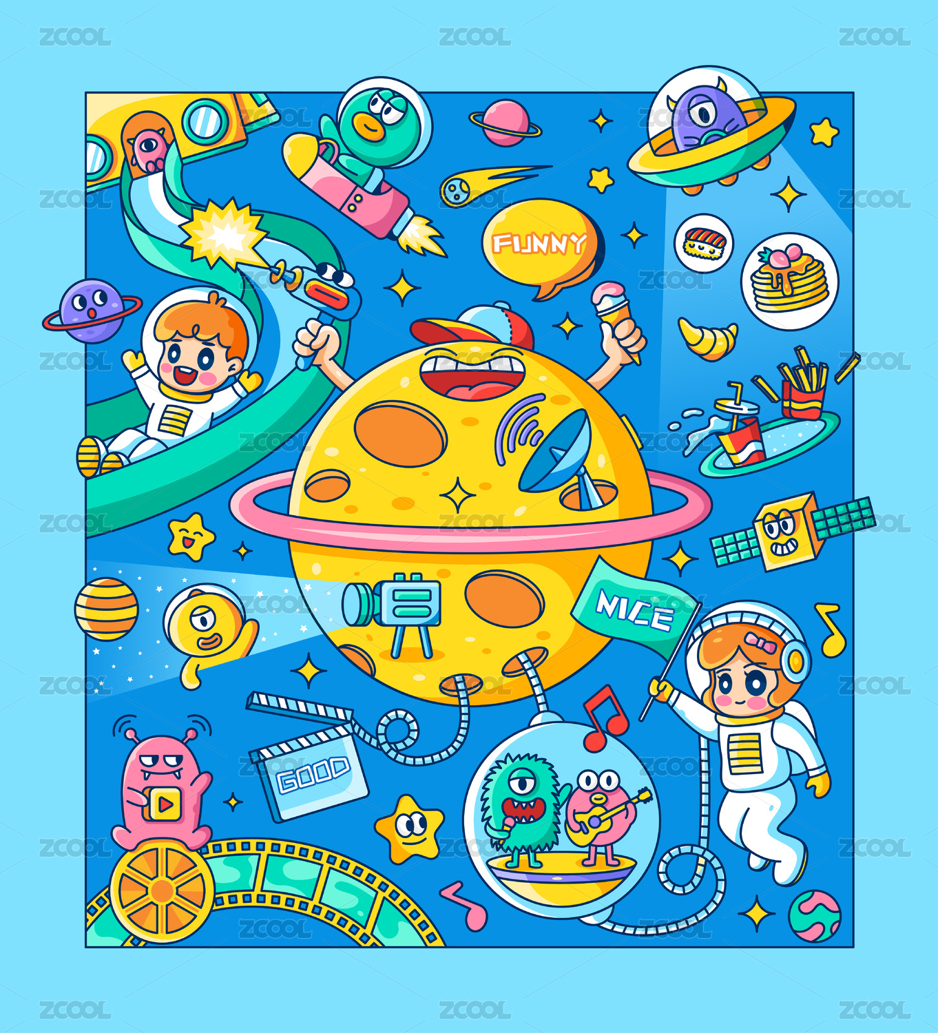 卡通兒童矢量插畫童趣宇宙太空怪獸外星人