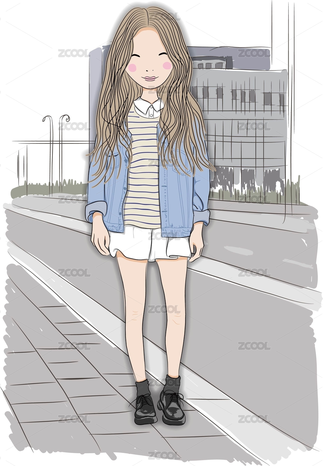 手繪beautiful young woman,fashion girl, Fashion model posing. Sketch. Vector illustration.