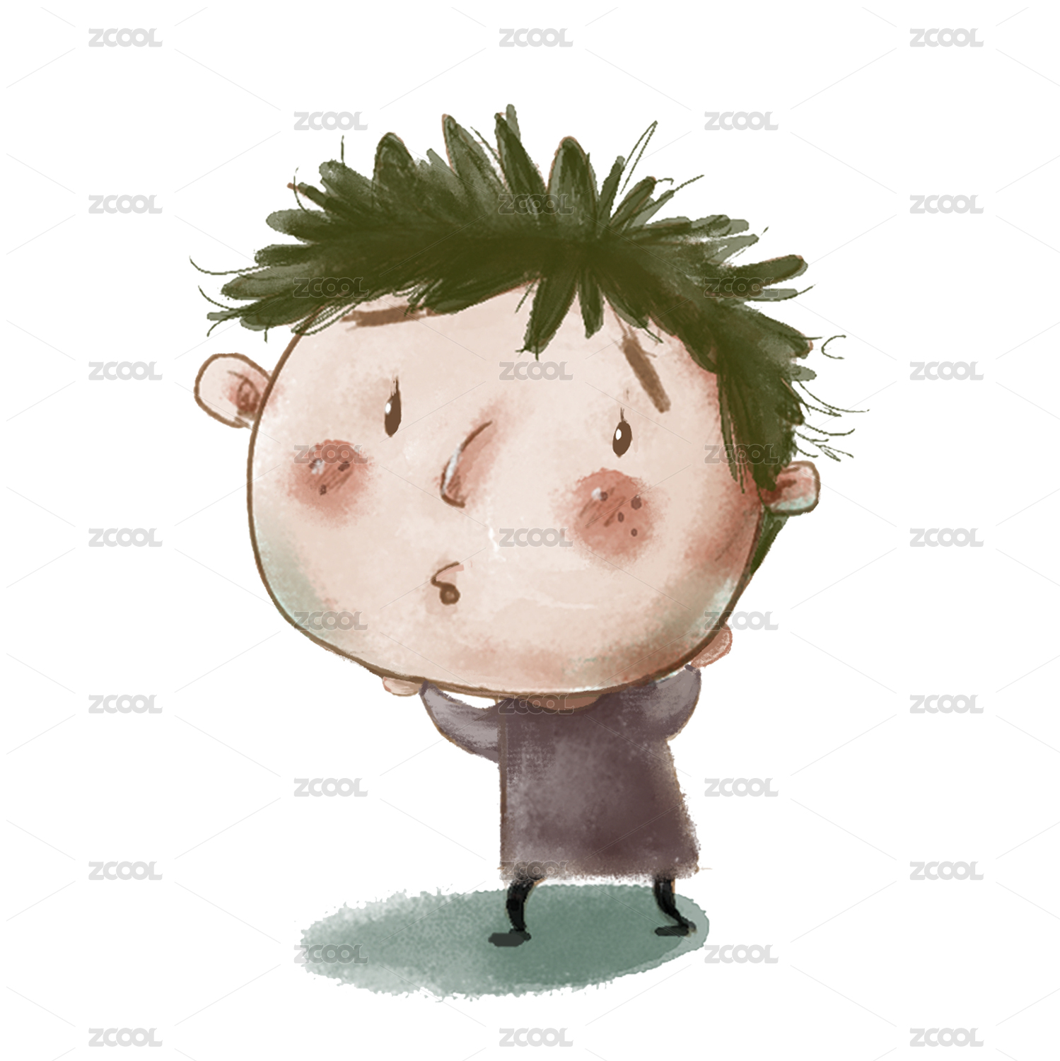 抱頭苦惱小男孩水彩兒童教育插畫/Hand drawn sketch water color