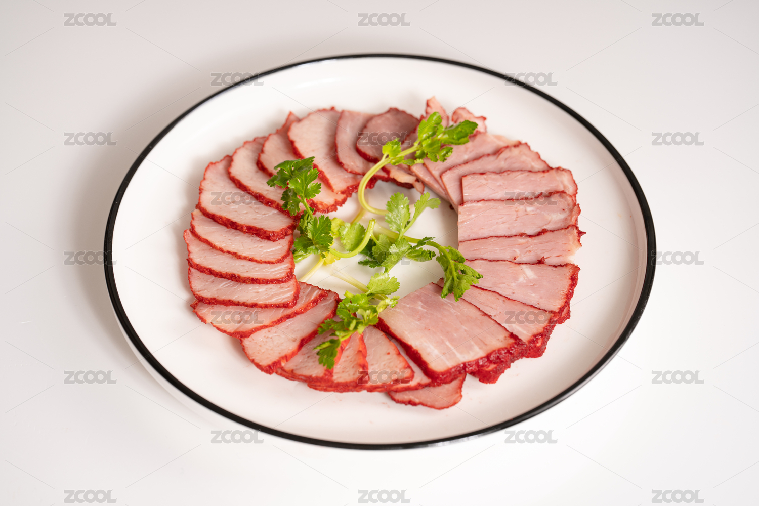 裝在盤子里切片的廣式叉燒肉