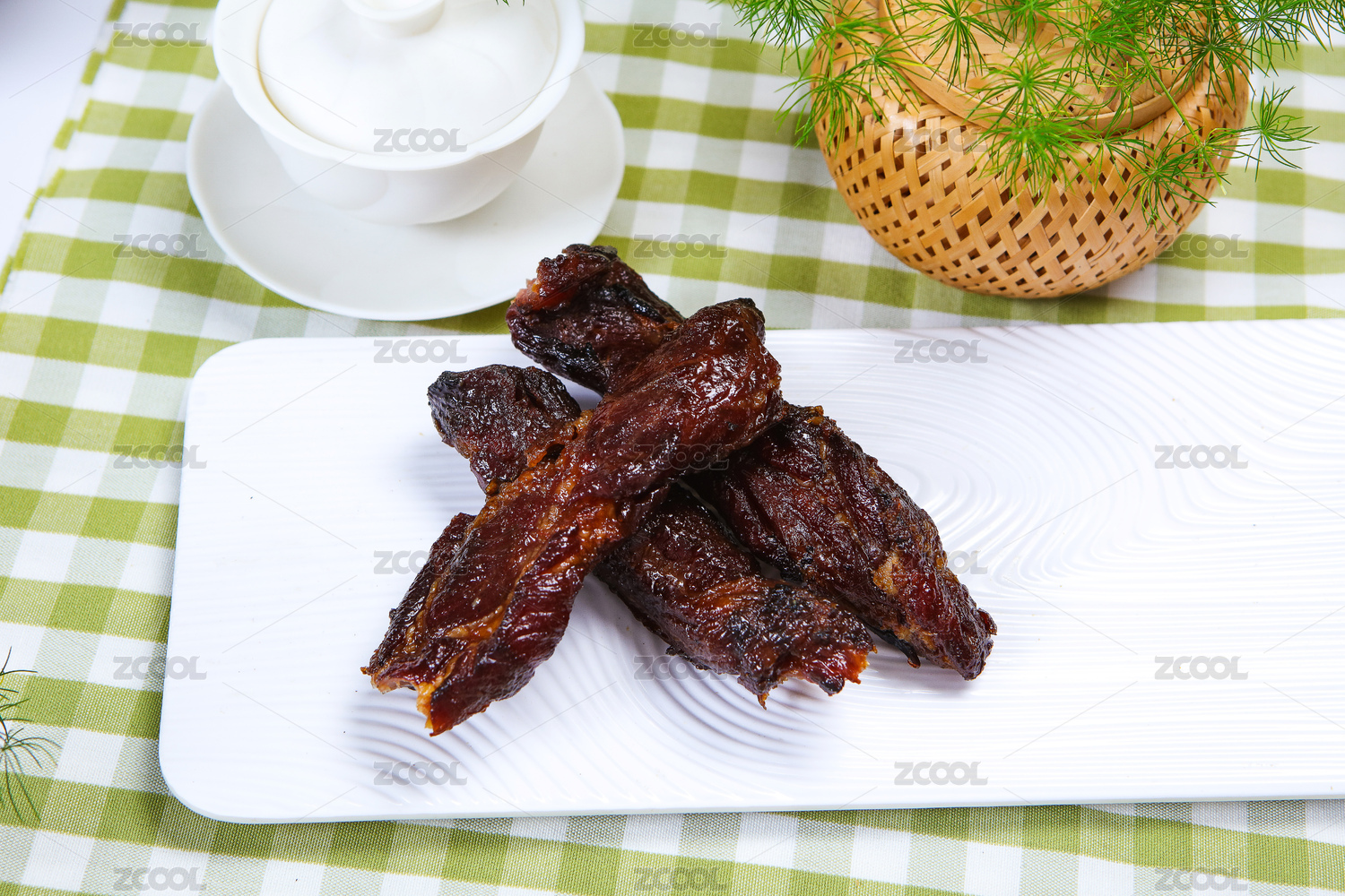 精美餐具裝的秘制廣味叉燒肉