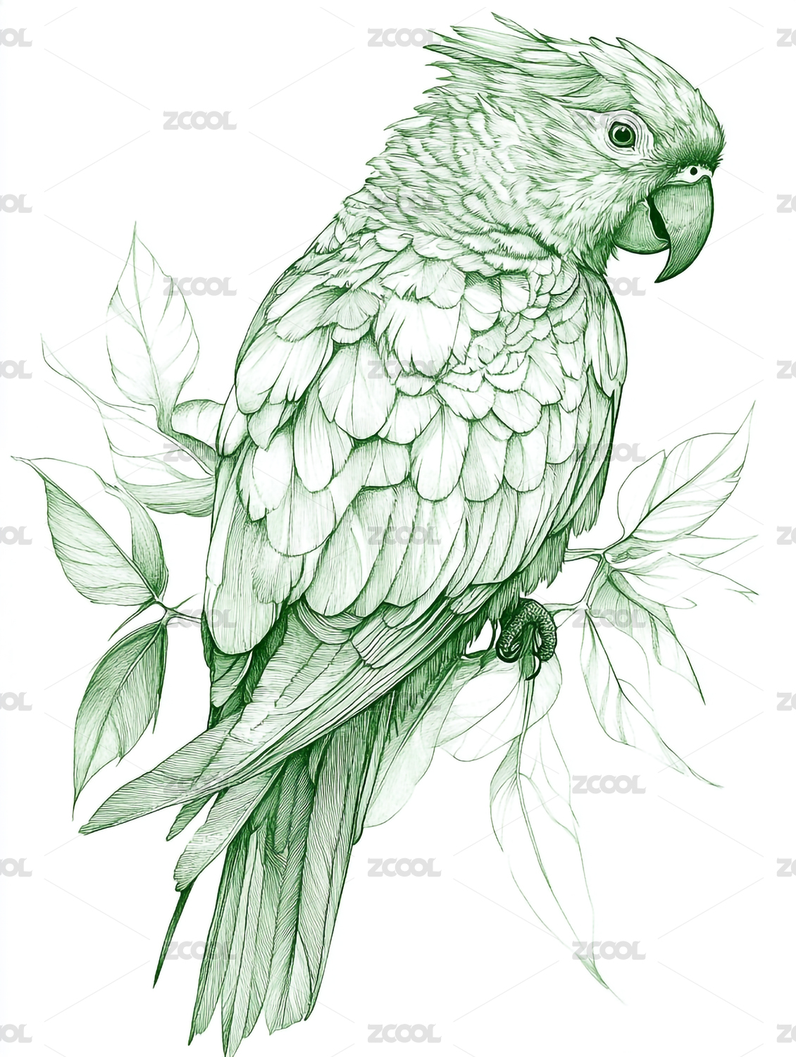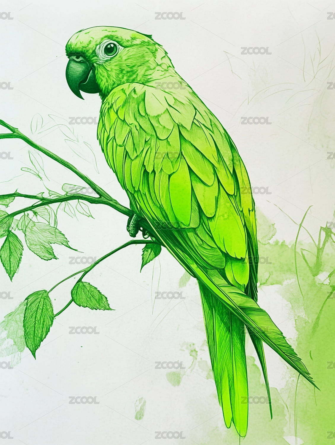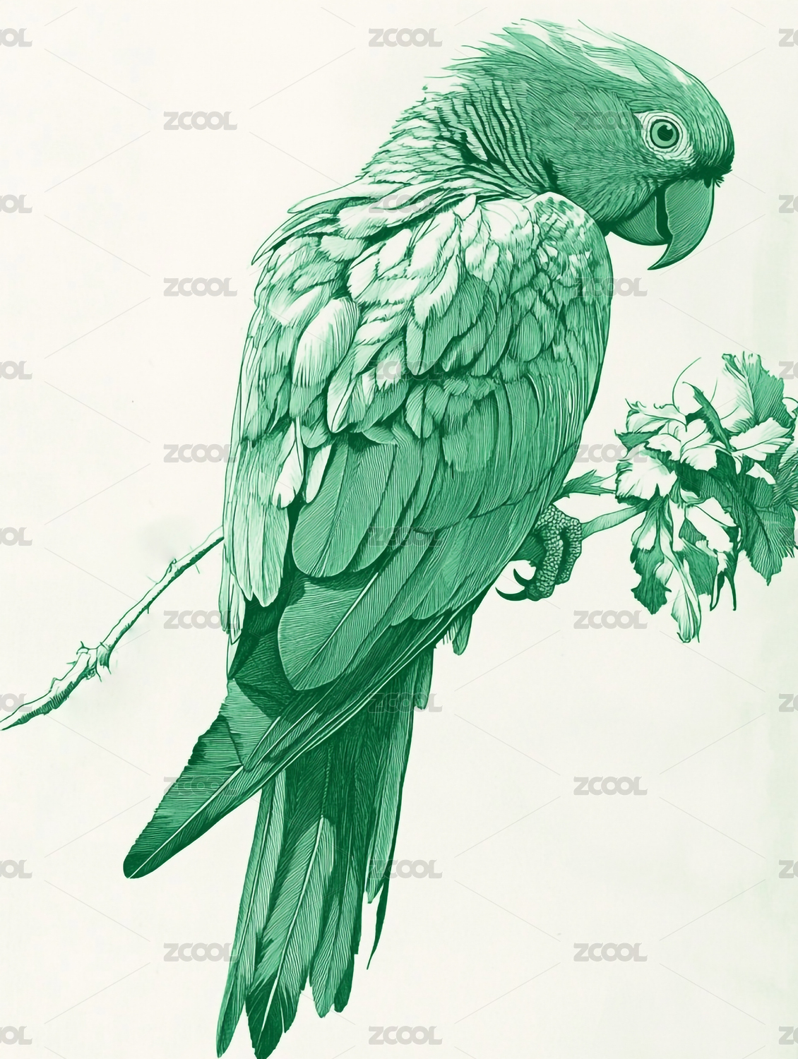 卡通版畫單色鸚鵡裝飾T恤LOGO圖案插畫