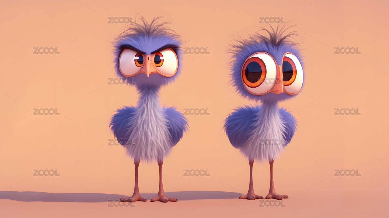 三維卡通毛絨鴕鳥頭像插畫圖案