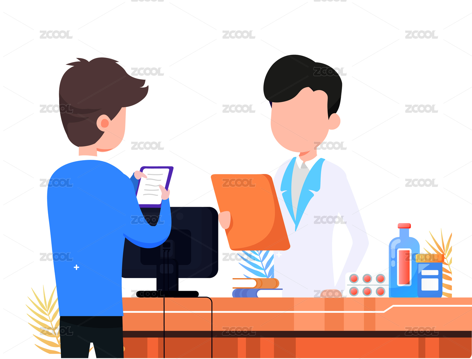 藥店買(mǎi)藥看病問(wèn)醫(yī)生矢量插畫(huà)