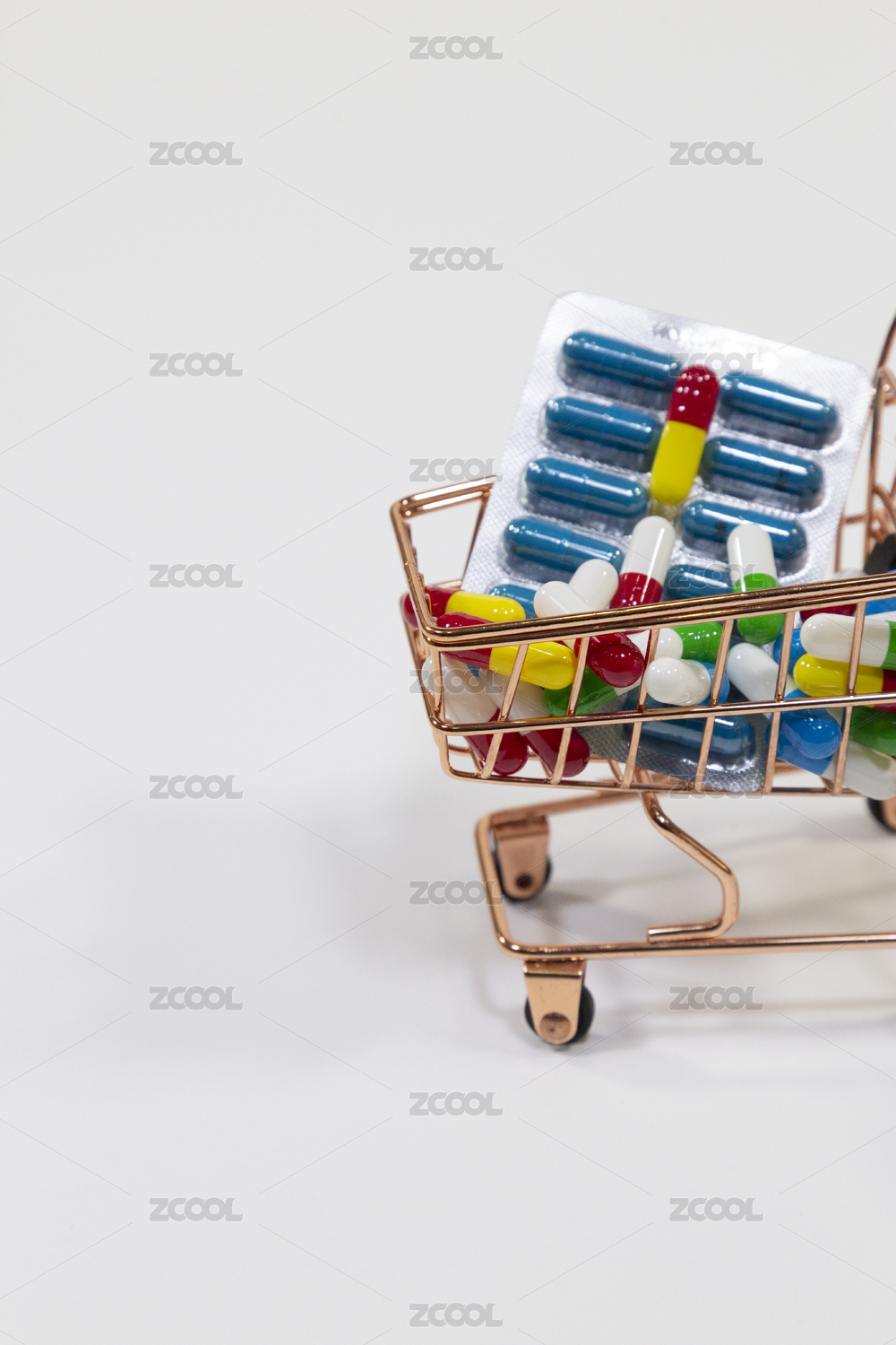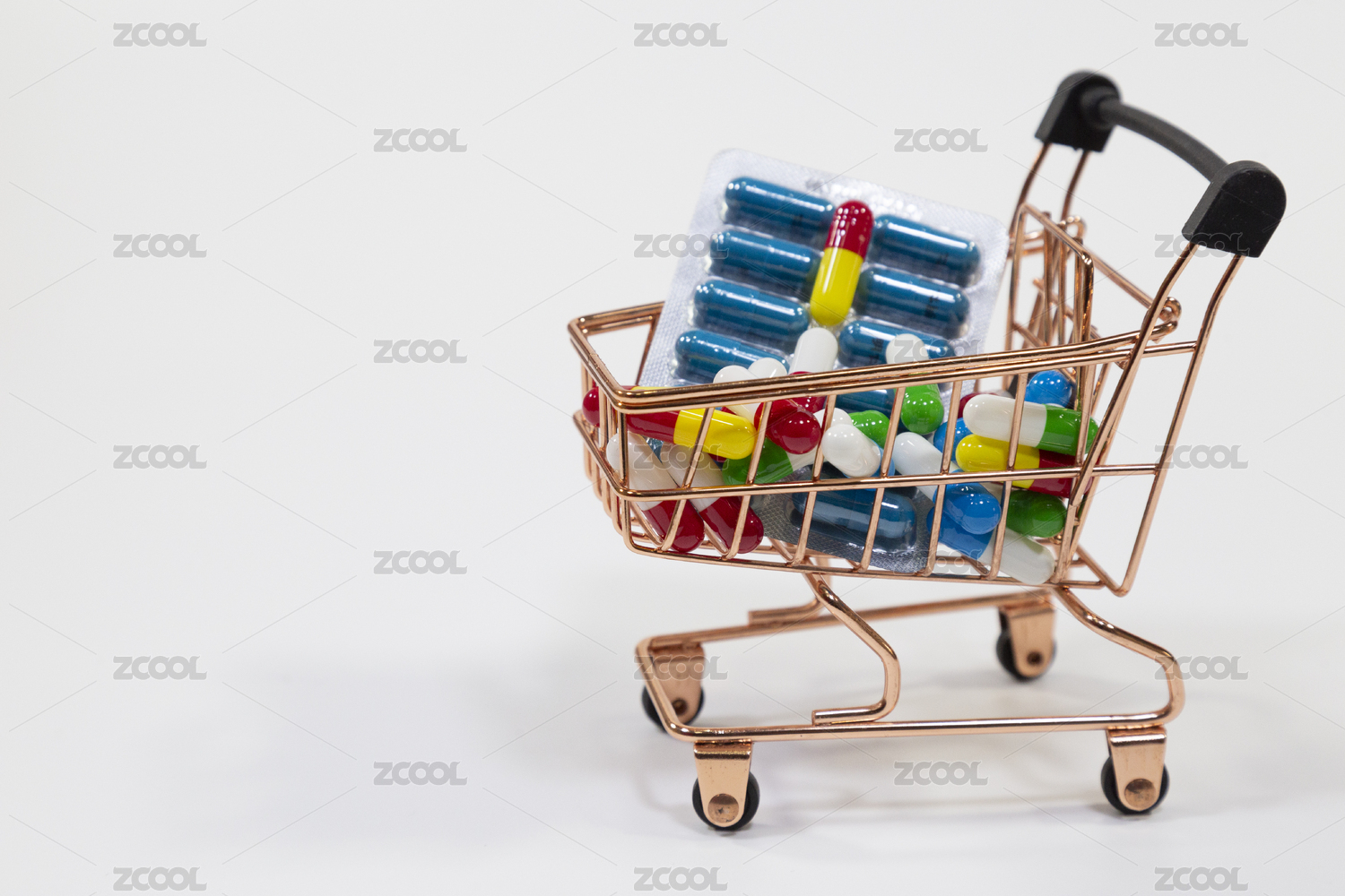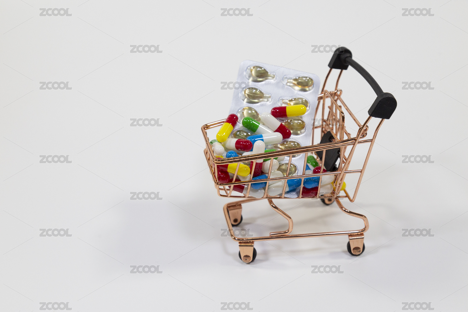 灰色水泥背景購(gòu)物車(chē)?yán)锏乃幬?/div>