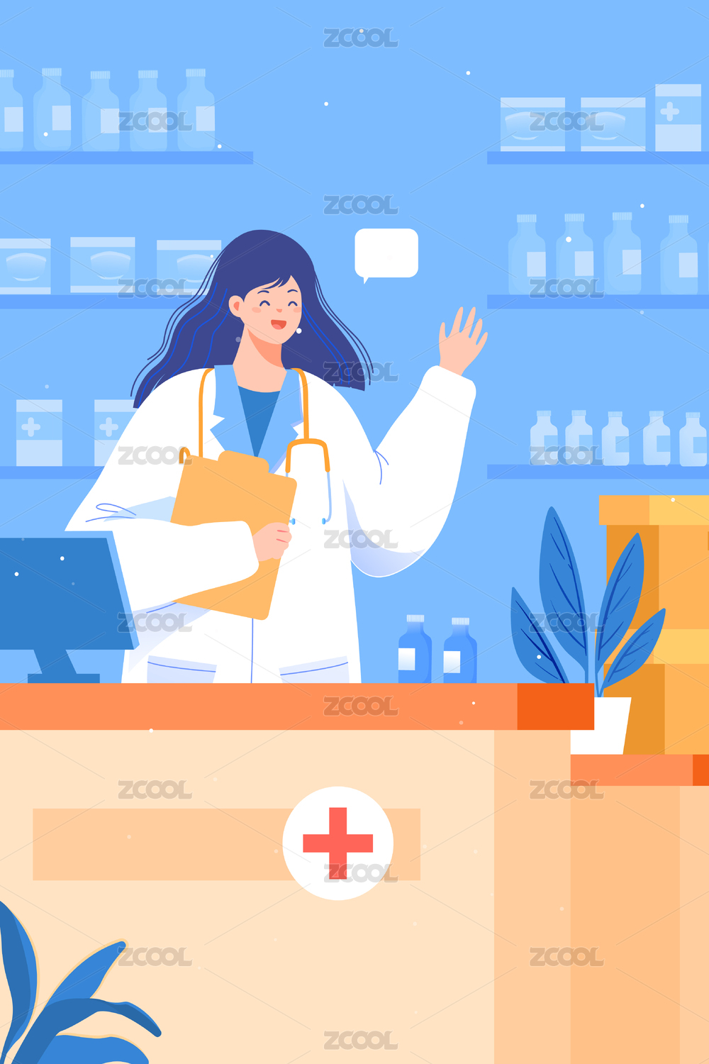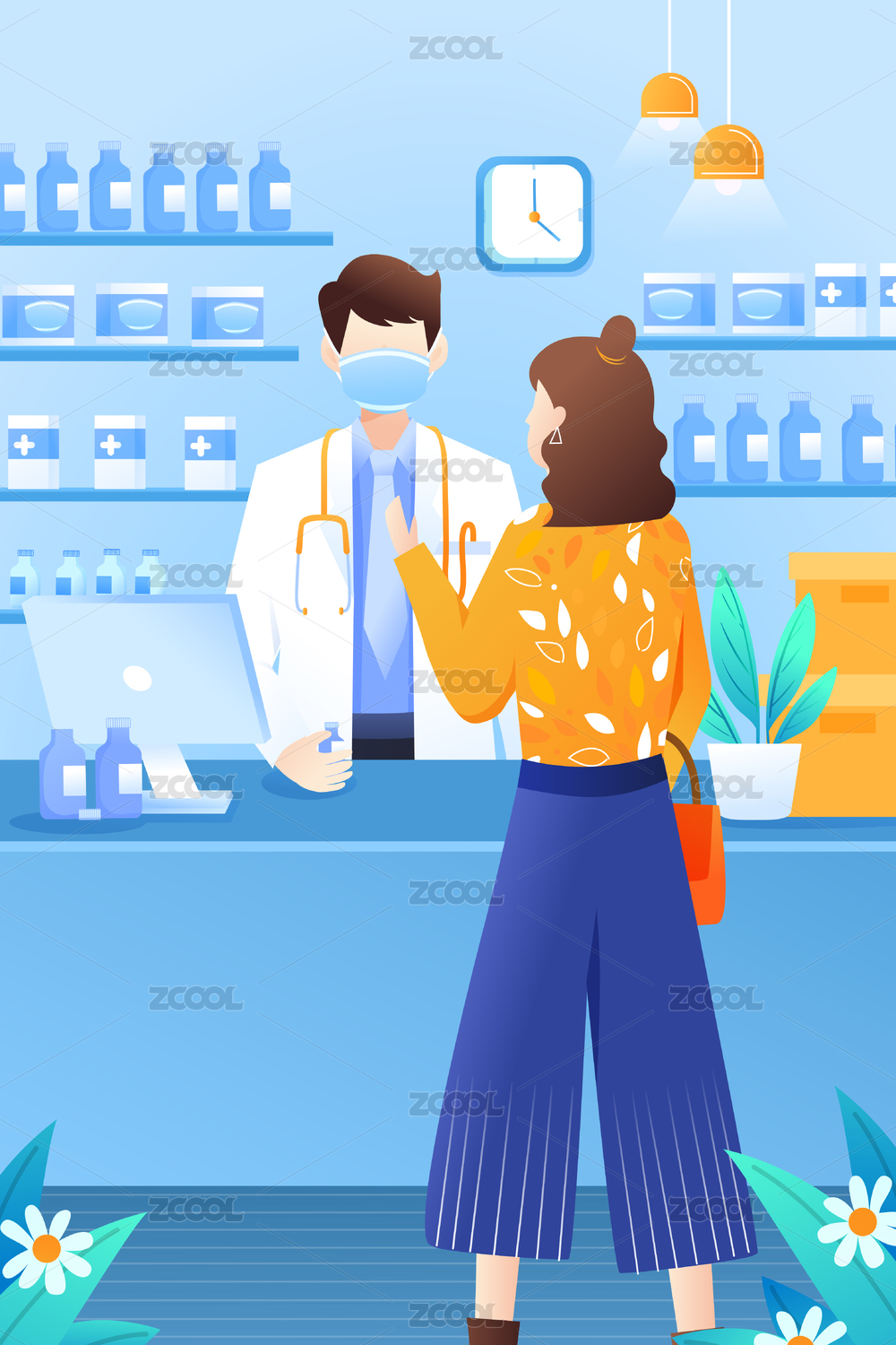 藥店買(mǎi)藥看病矢量插畫(huà)