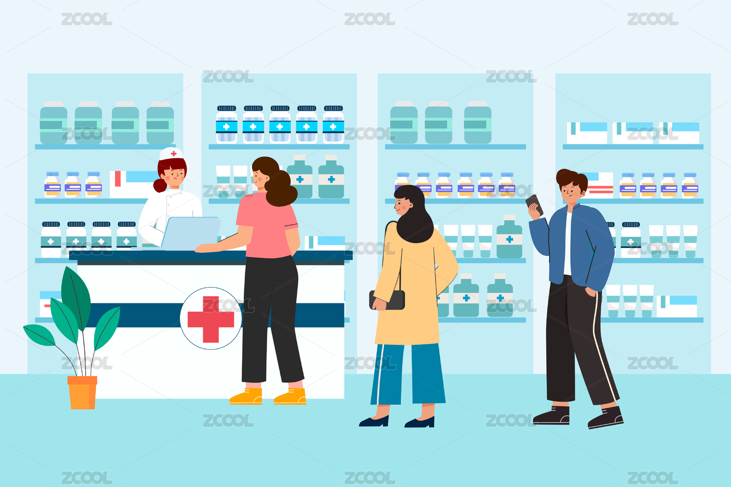 排隊(duì)購(gòu)買(mǎi)藥品插畫(huà)