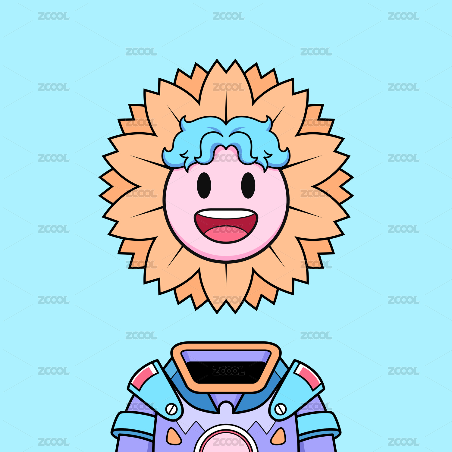 穿戴未來(lái)科技裝甲的可愛笑臉花朵