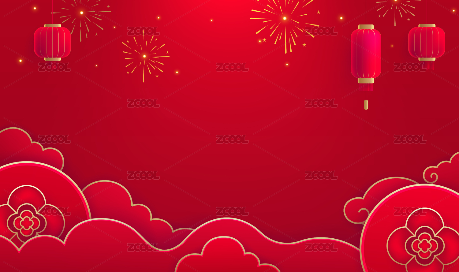 春節(jié)背景設(shè)計(jì)燈籠和節(jié)日禮花云紋