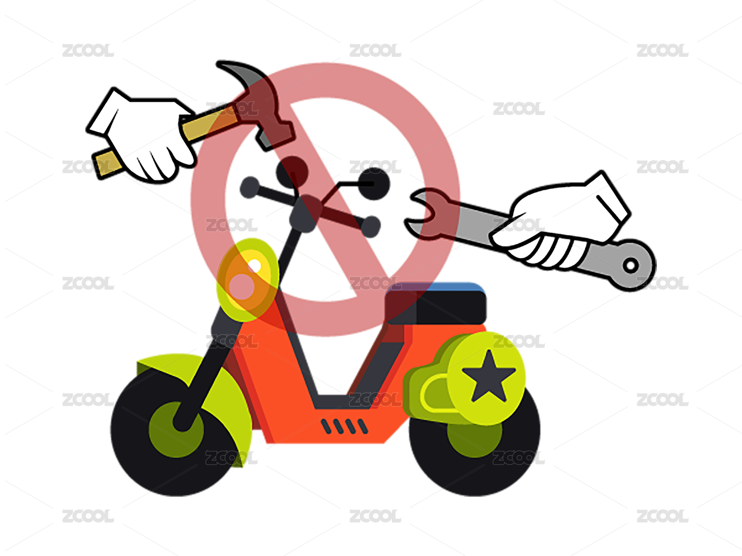 錘子扳手大頭釘矢量插畫電動車不要隨意改車