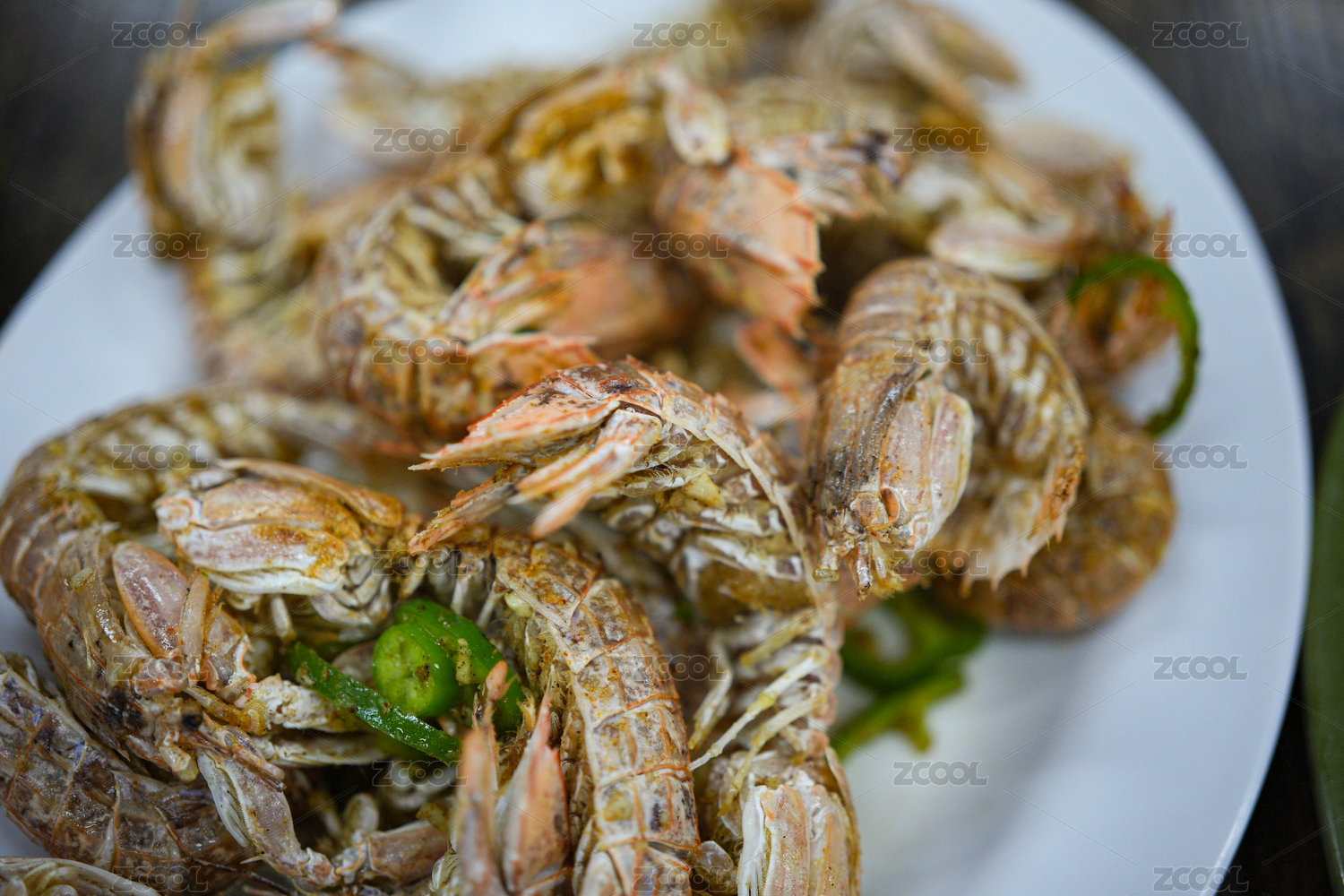 中國廣州粵菜-椒鹽皮皮蝦海鮮特寫