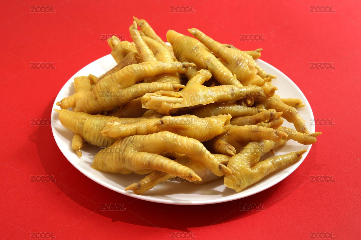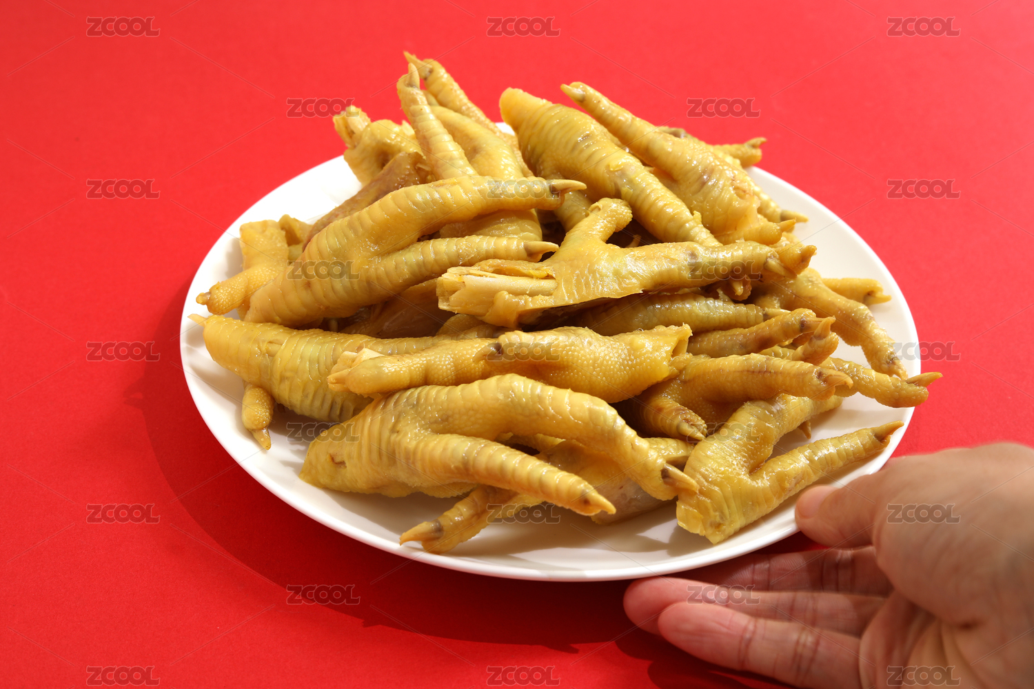 紅色桌面上一盤春節(jié)美食廣東粵菜鹽焗雞爪