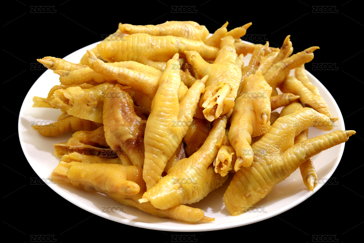 黑色背景上一盤美食廣東粵菜鹽焗雞爪的特寫