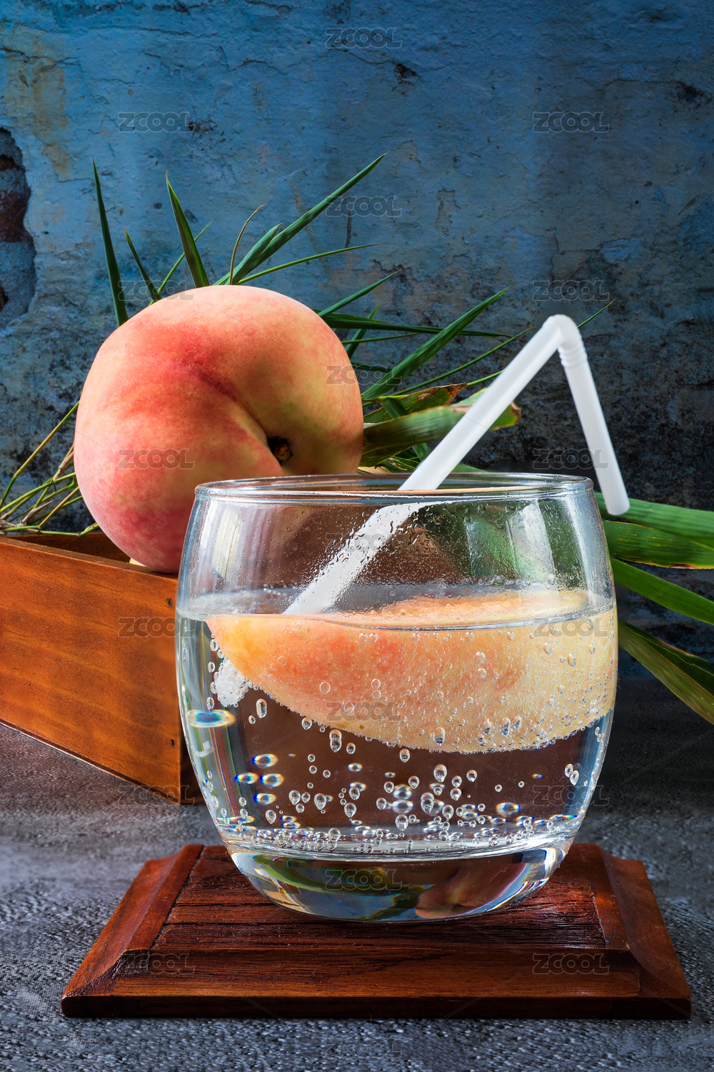 夏日大理石桌面上的蜜桃氣泡水