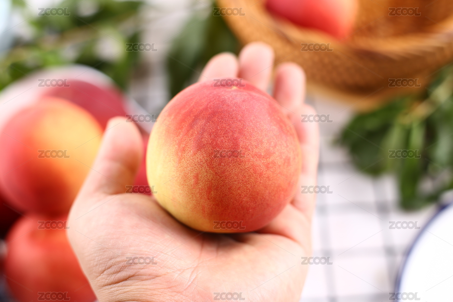 手拿新鮮紅蜜桃