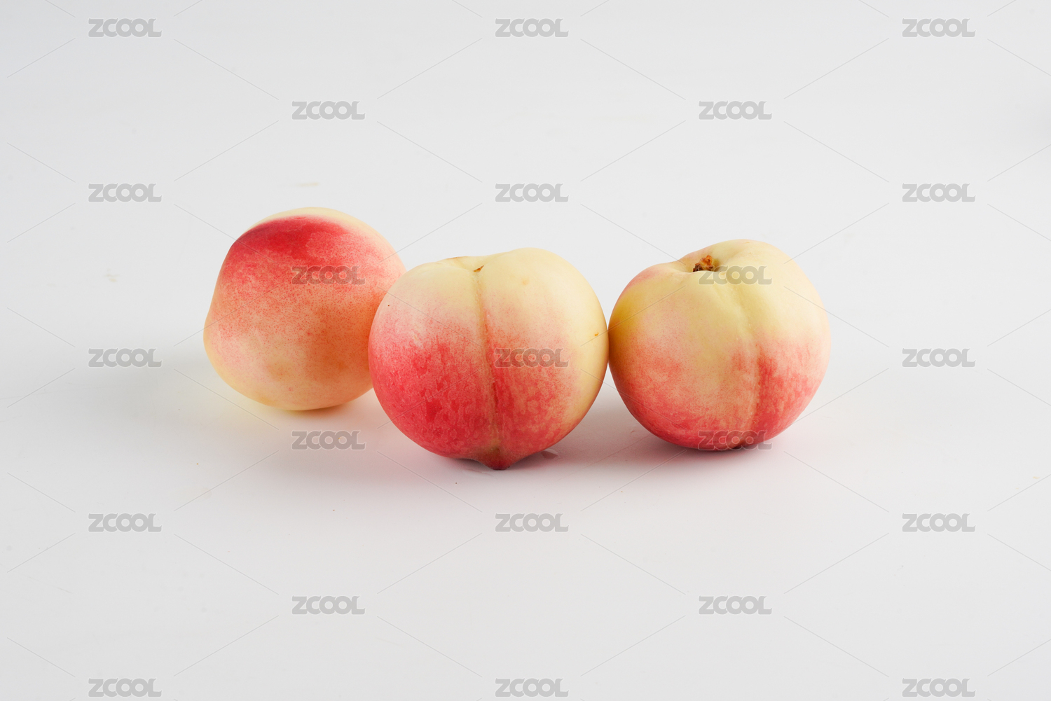 鷹嘴蜜桃3個帶綠葉子白底