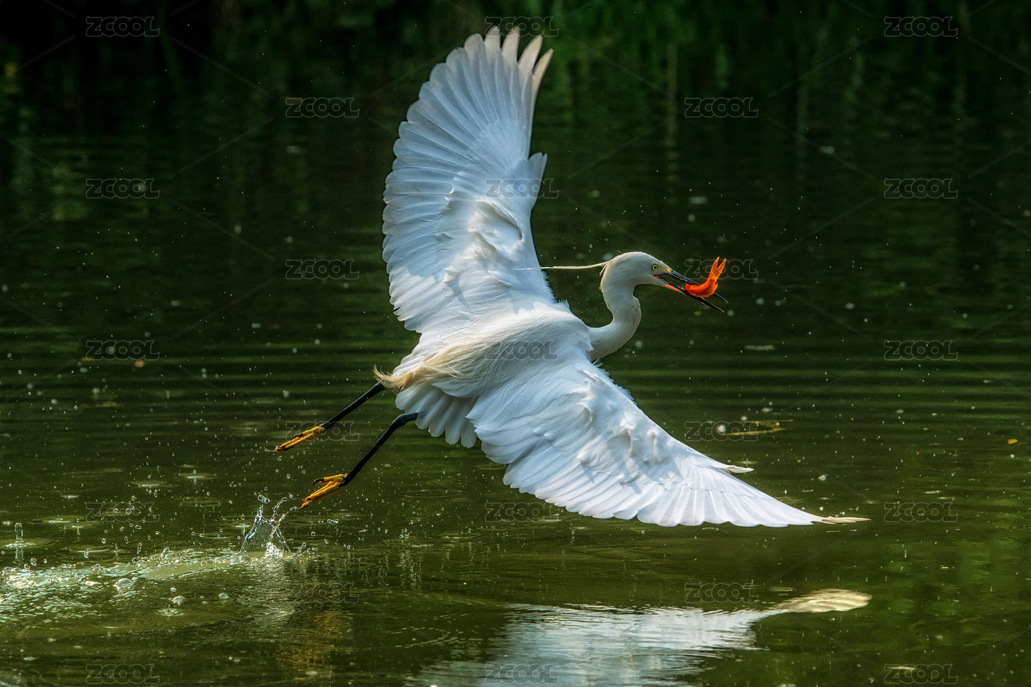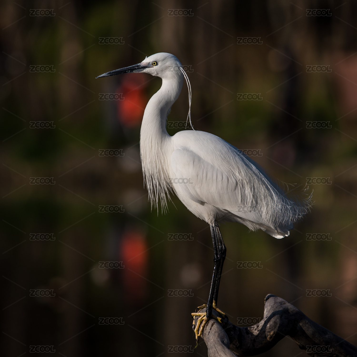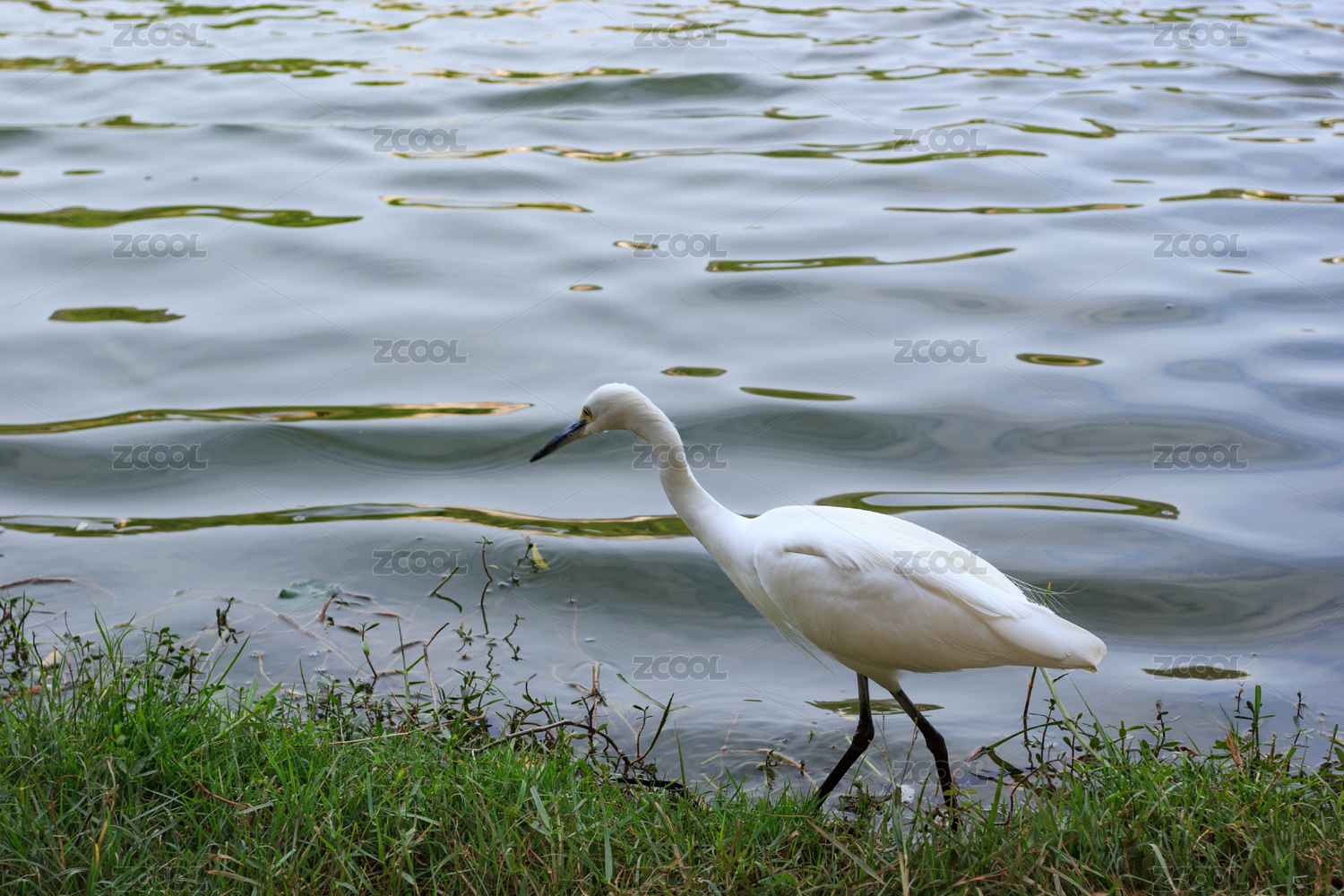 一只小白鷺鳥(niǎo)在開(kāi)闊的沼澤淺水灘里搜尋捕食