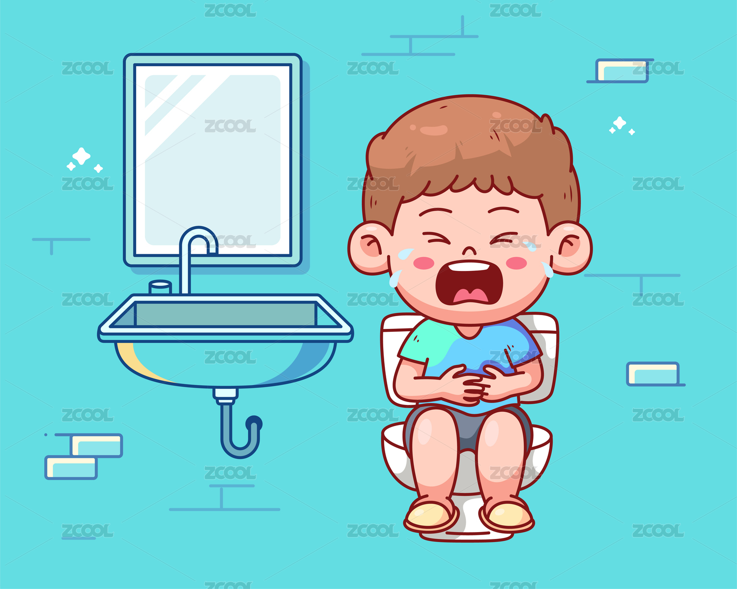 小男孩在衛(wèi)生間里坐在馬桶上哭泣