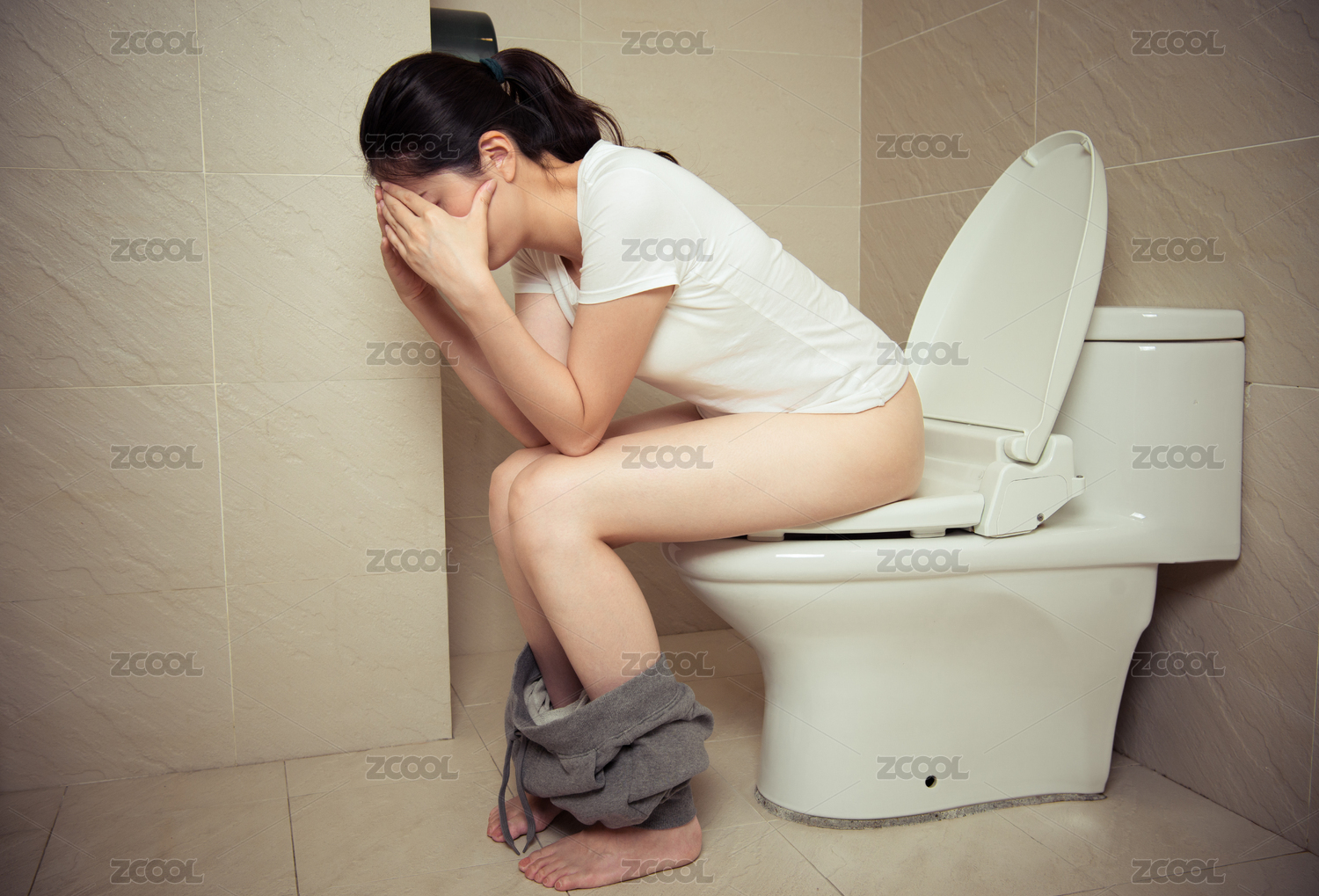 坐在馬桶上的女生