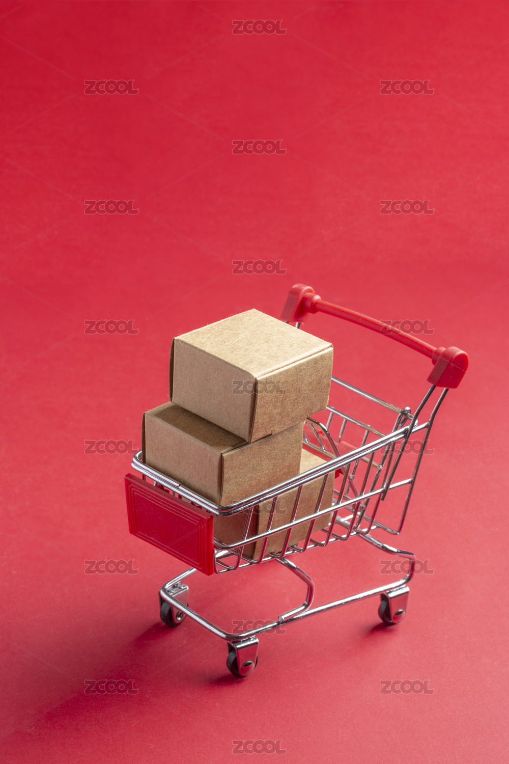 Creative shopping cart combination in red background