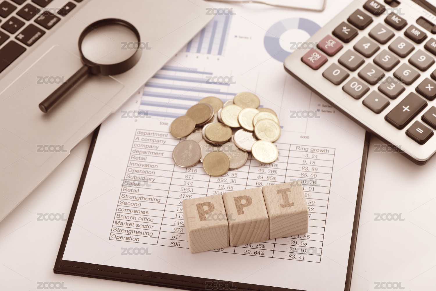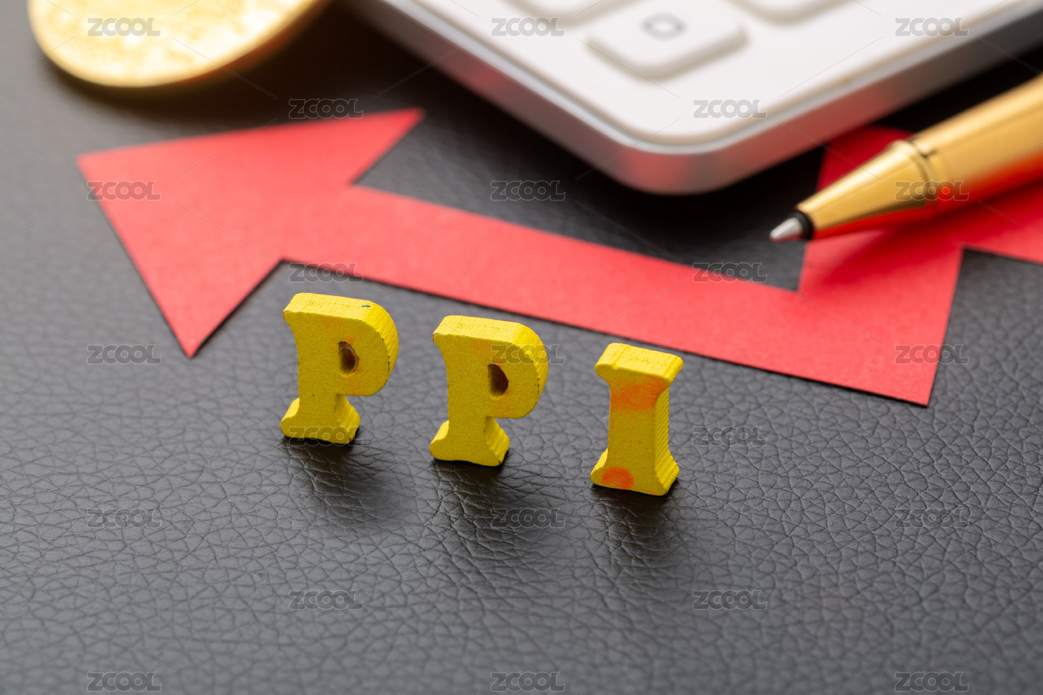 金融辦公用品上放著字母積木PPI