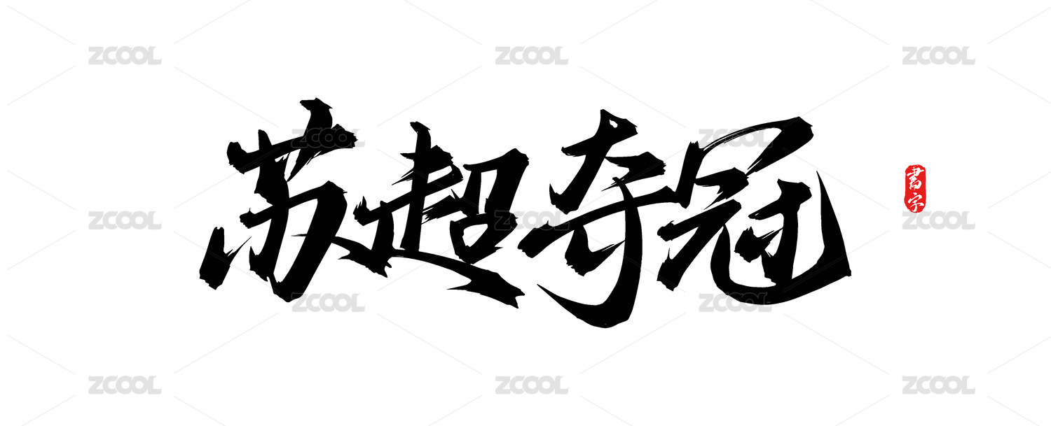蘇超奪冠矢量手寫書法字體