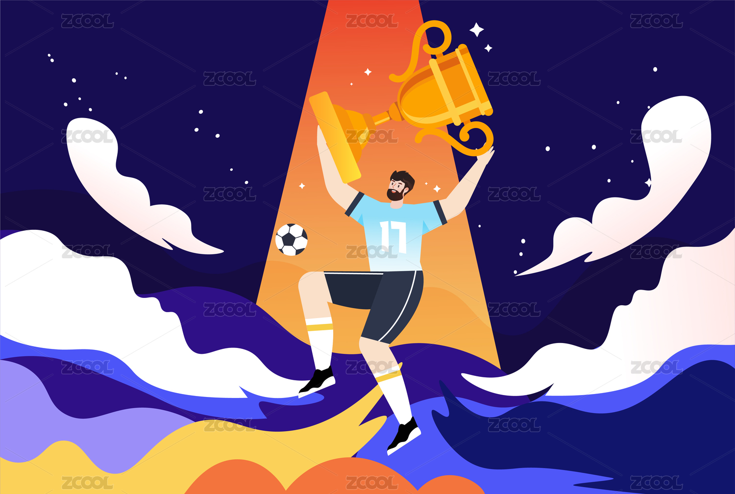 足球奪冠插畫