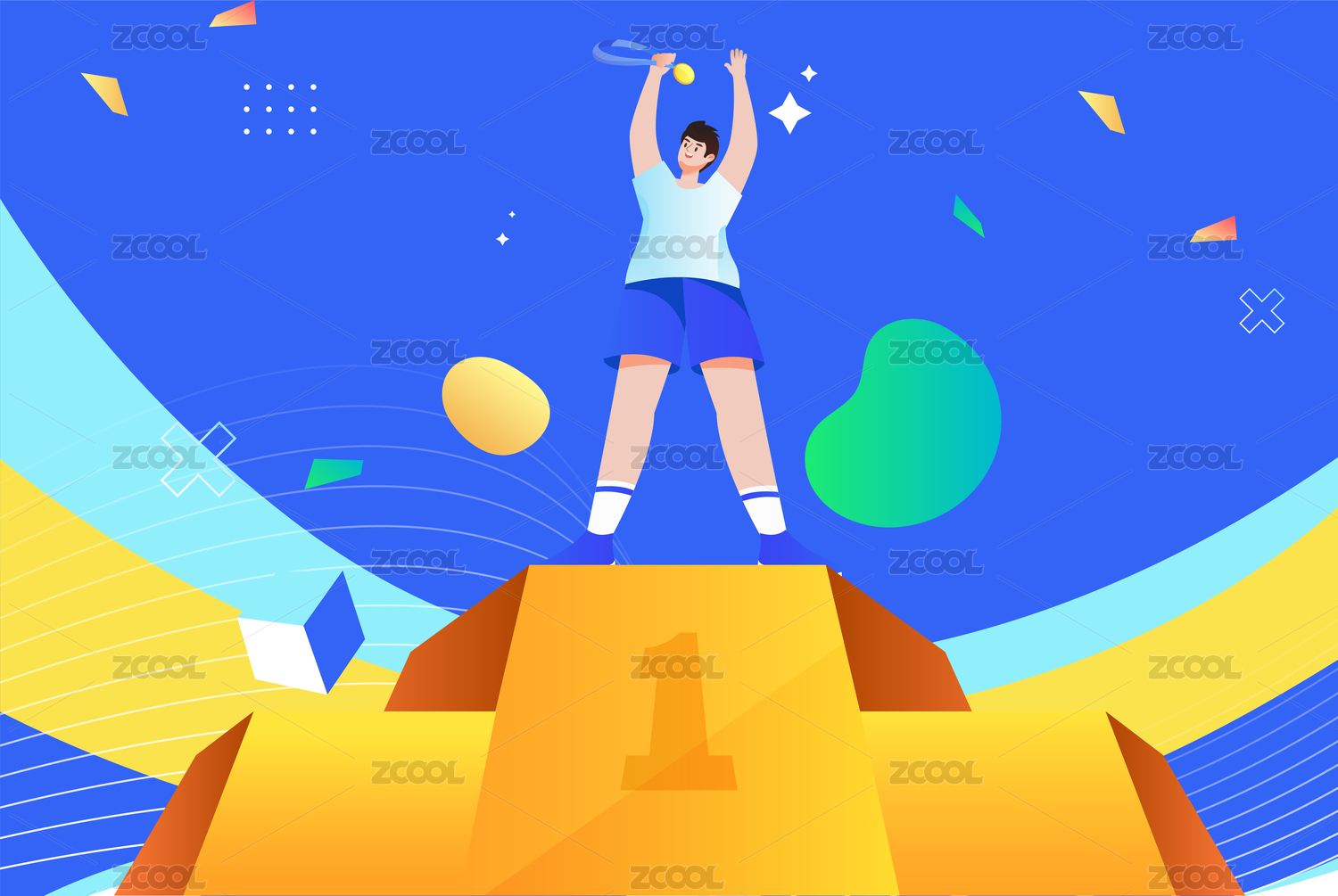 手繪卡通運動員勝利奪冠插畫