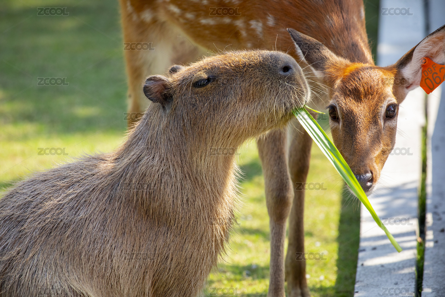 農(nóng)場里可愛的水豚與梅花鹿,正在啃食牧草