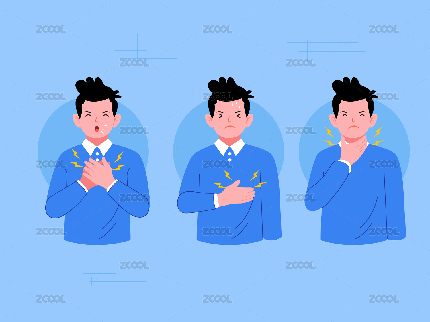 一個(gè)男生的甲狀腺放大圖矢量插畫