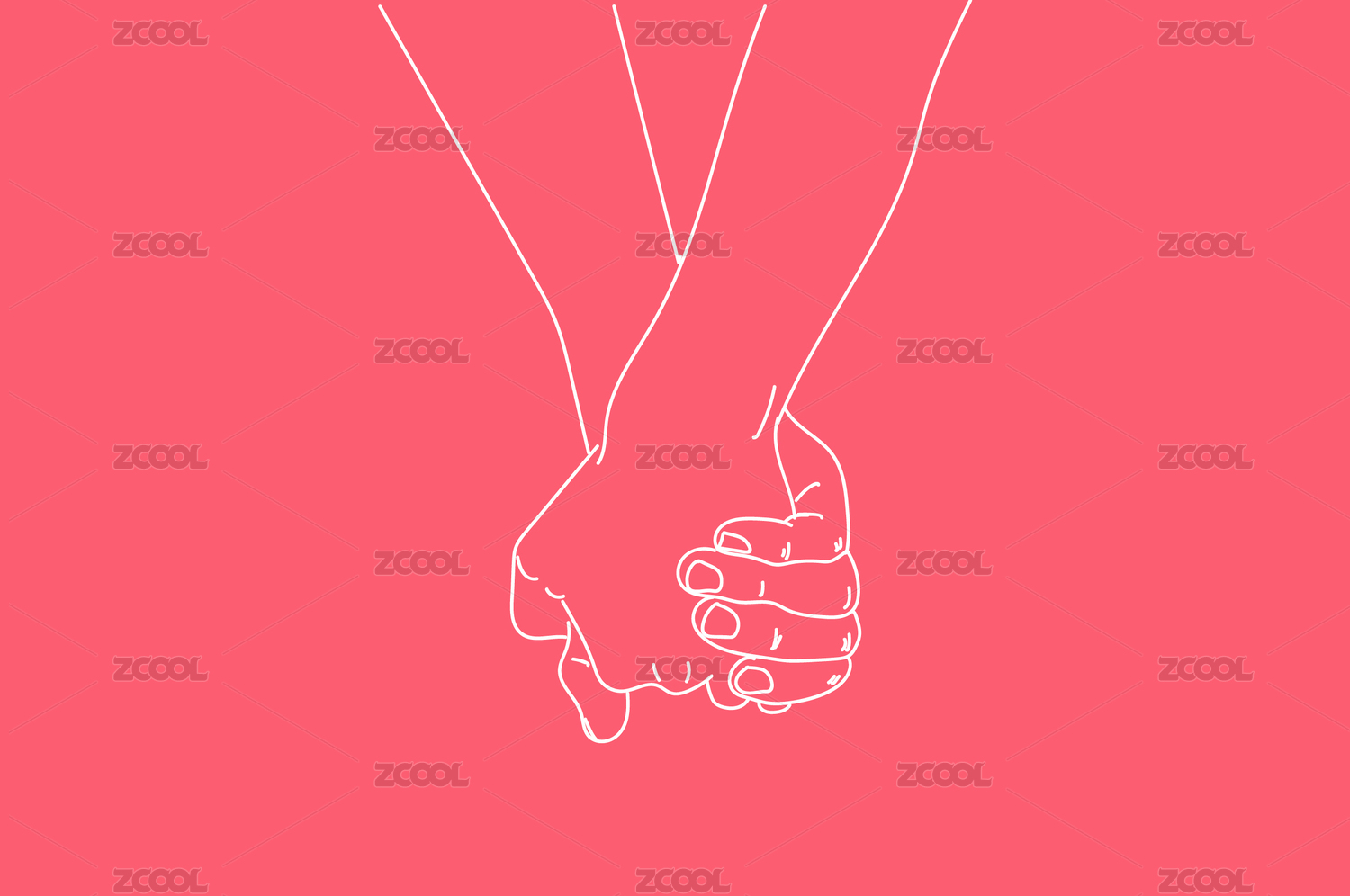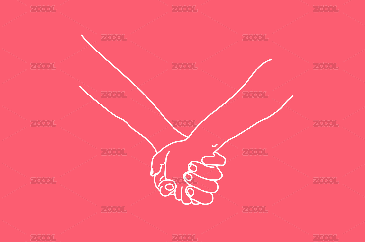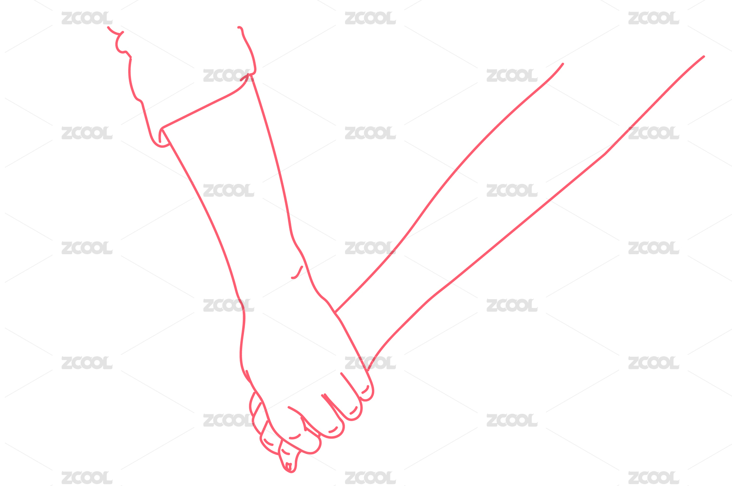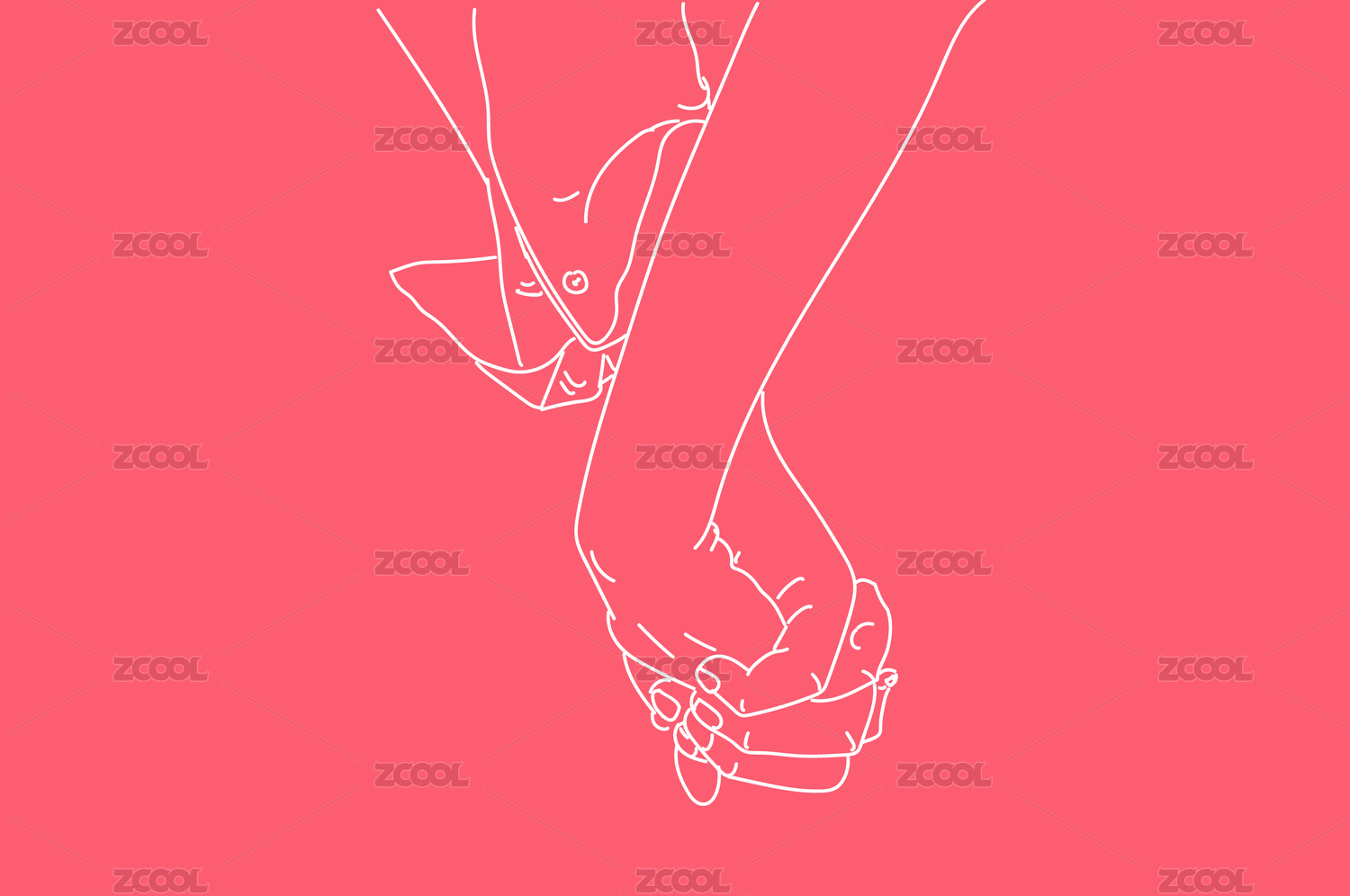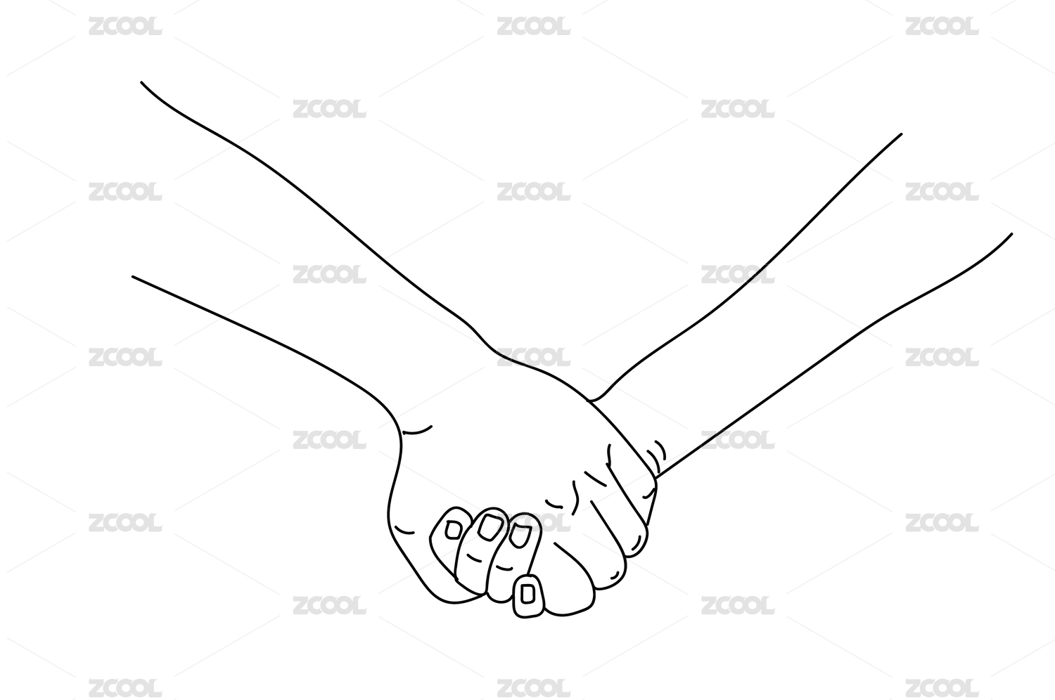 情侶手牽手十指相扣簡易矢量線稿插畫