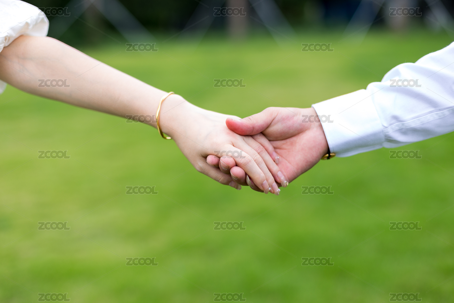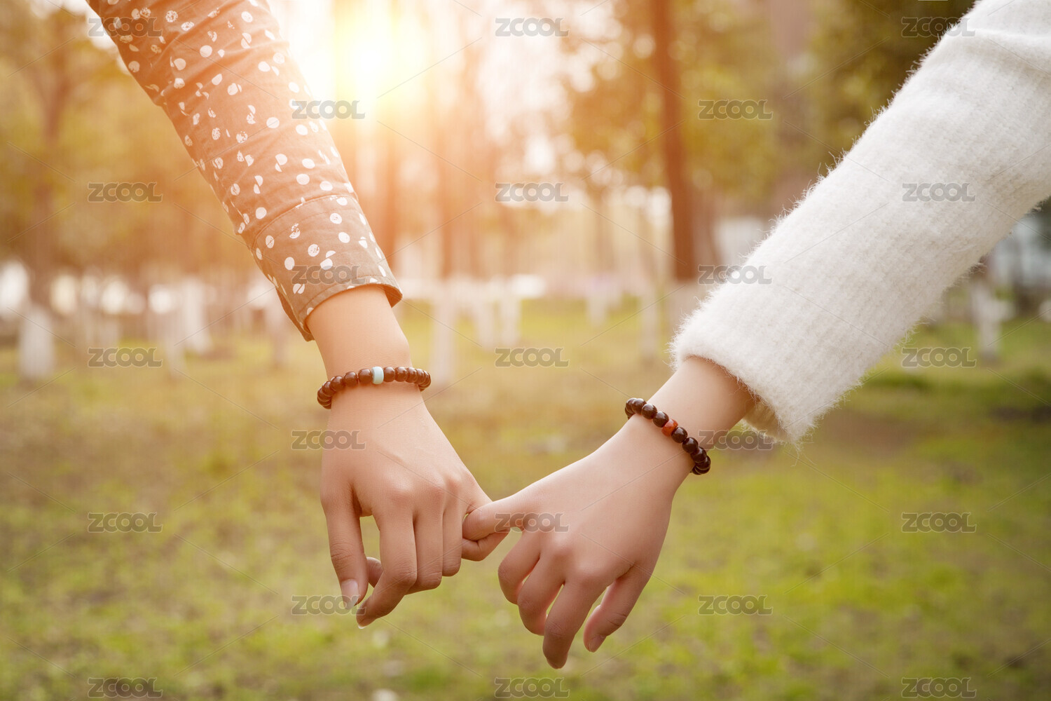 戴手串的男女手牽手