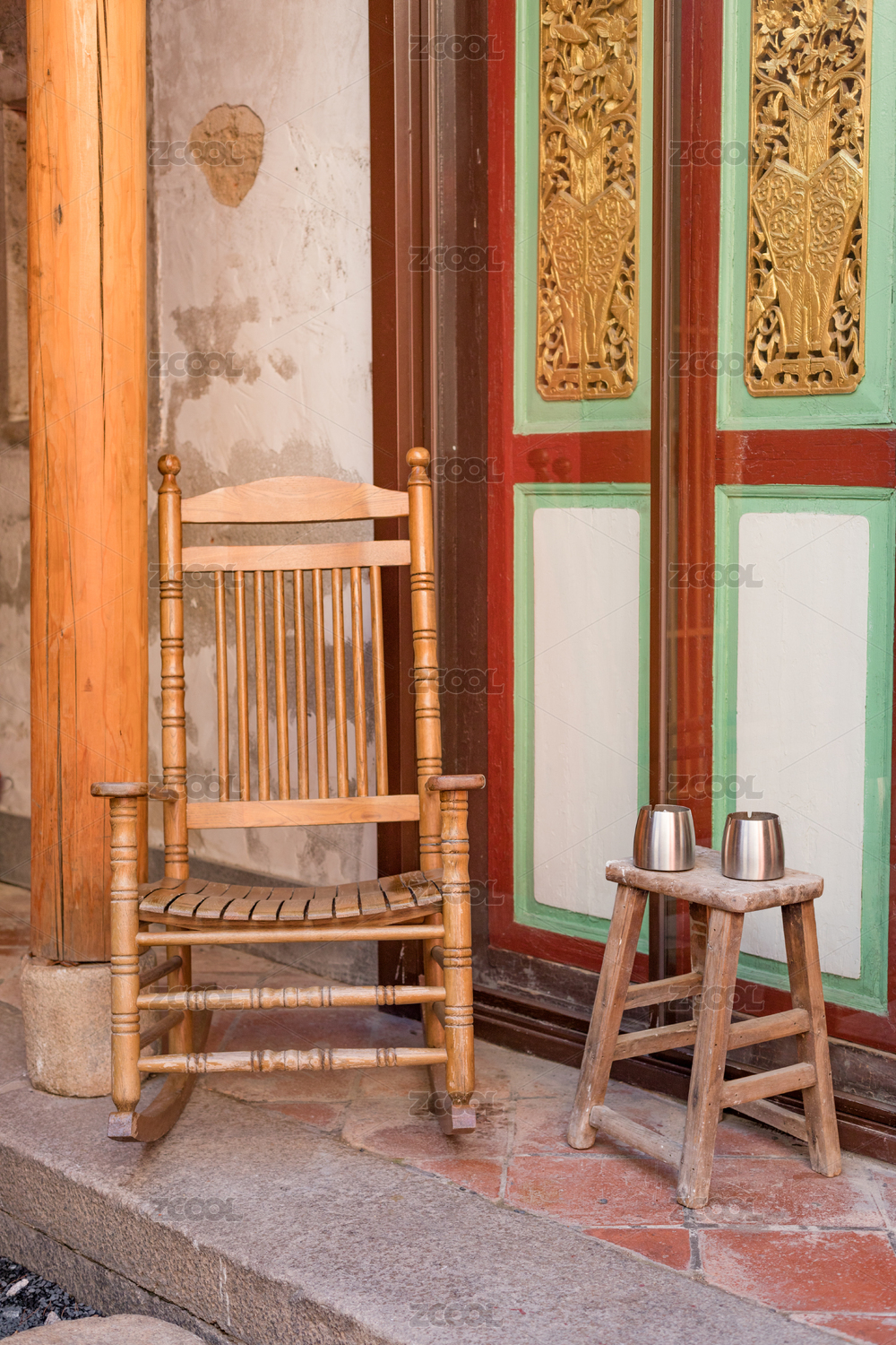 古鎮(zhèn)上咖啡館二樓的露天庭院