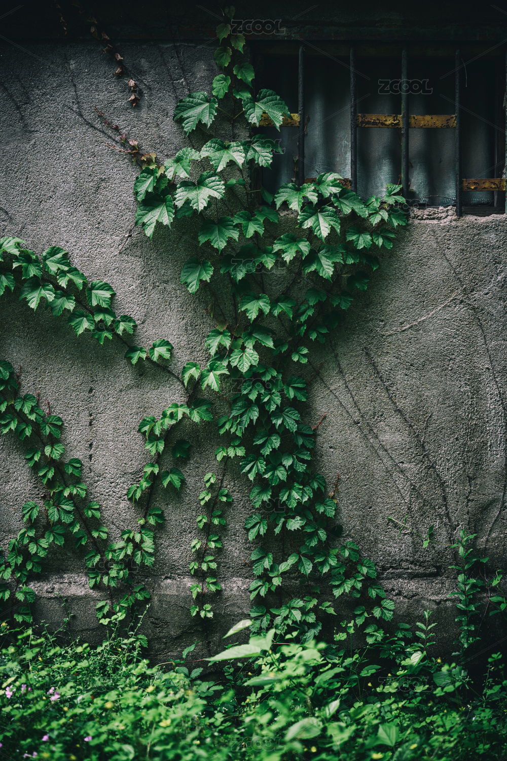 夏天庭院內(nèi)一面有爬墻虎的院墻