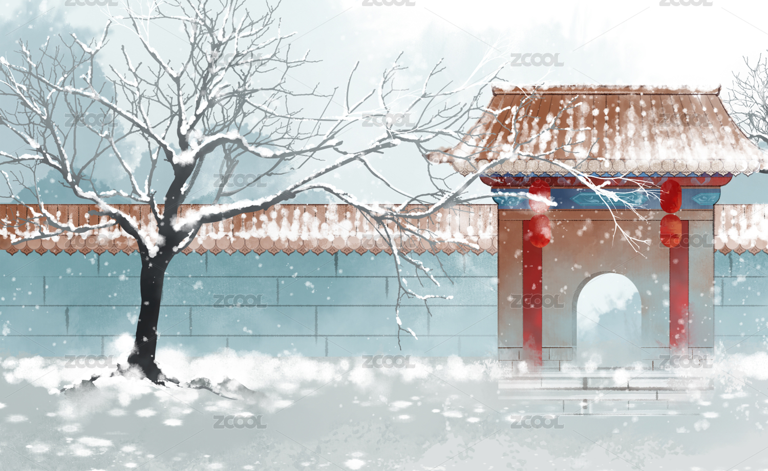 古風(fēng)冬天庭院雪景場(chǎng)景