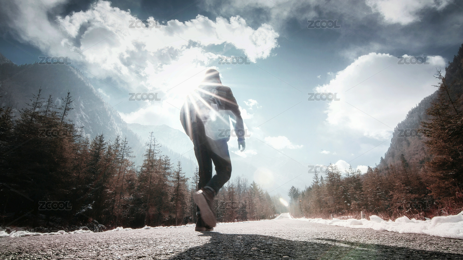 迎著陽(yáng)光,走在寬闊的馬路上,留下一個(gè)背影