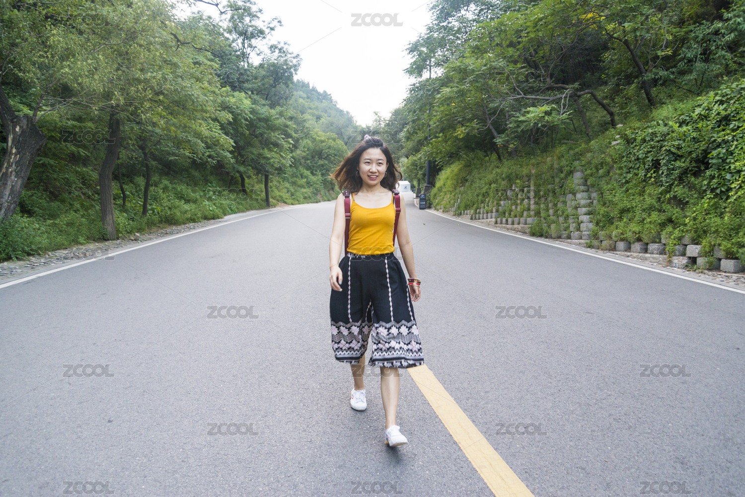 在去長(zhǎng)城的道路上的女孩