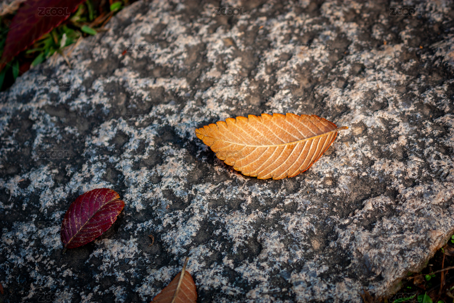 青石板路上的落葉