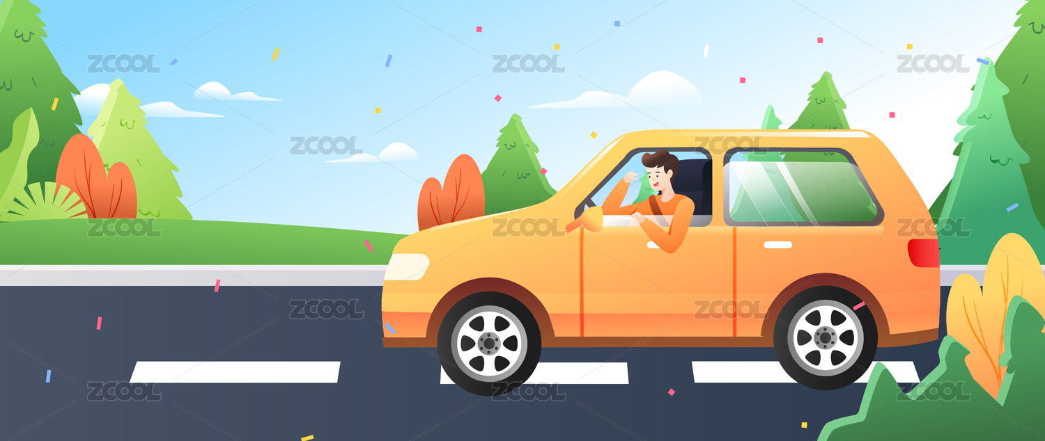 開(kāi)車(chē)在路上矢量插畫(huà)
