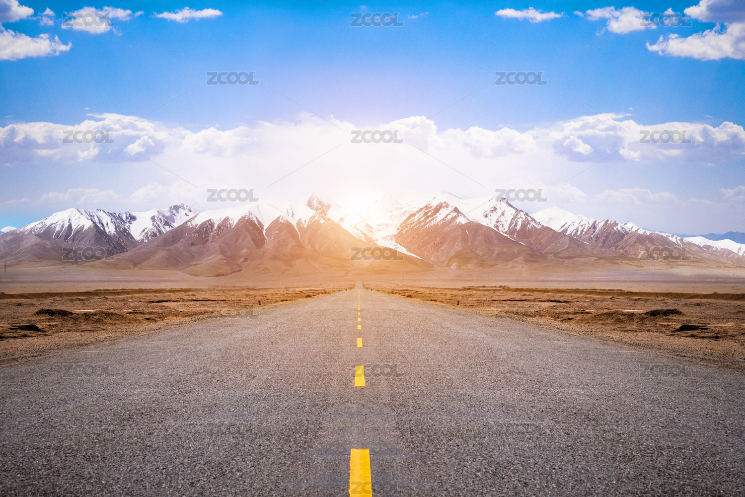 2020年新年中國(guó)青海道路公路高速馬路公路上筆直的公路且對(duì)面是一個(gè)高高的雪山風(fēng)景風(fēng)光2020年新開(kāi)始