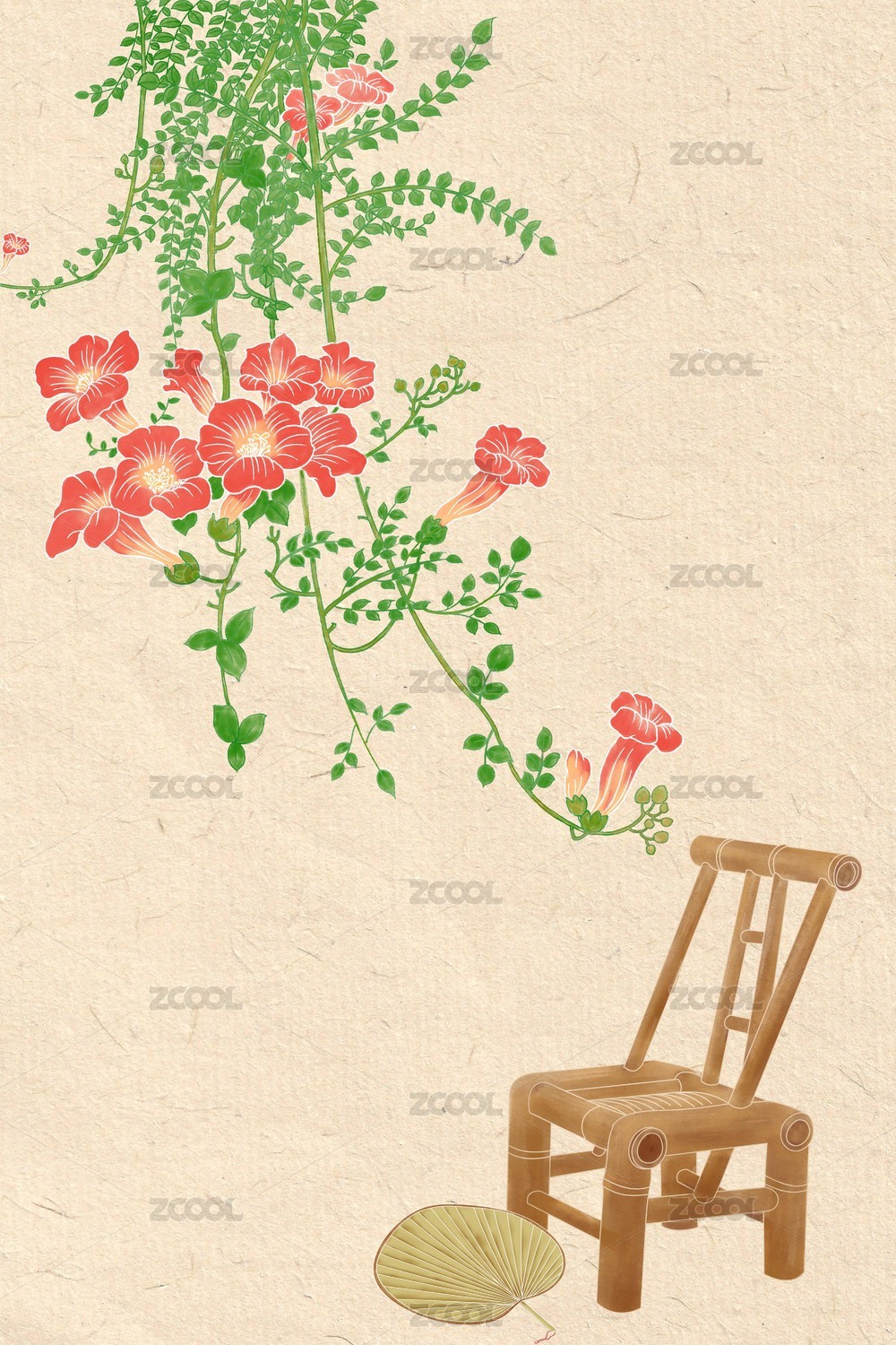 唯美國風(fēng)手繪凌霄花插畫小暑海報