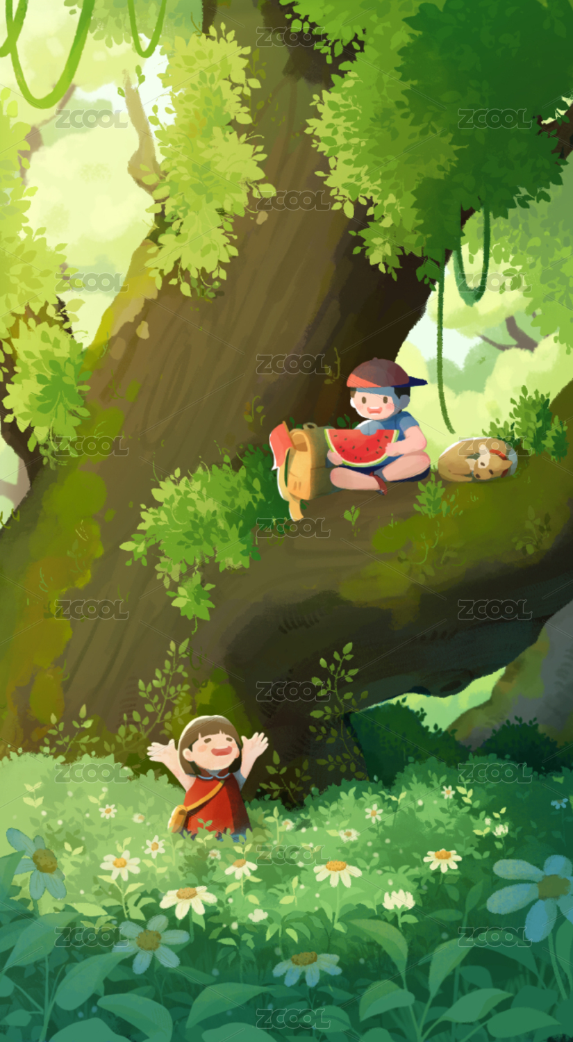 插畫小暑大暑西瓜男孩手繪海報