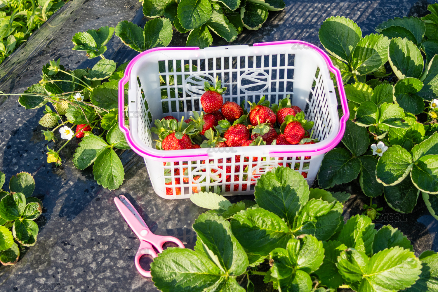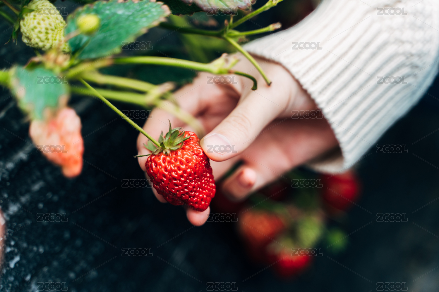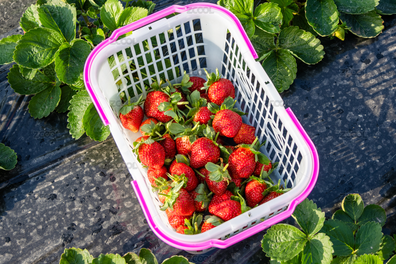 可愛的亞洲小女孩在草莓農(nóng)場采摘新鮮的