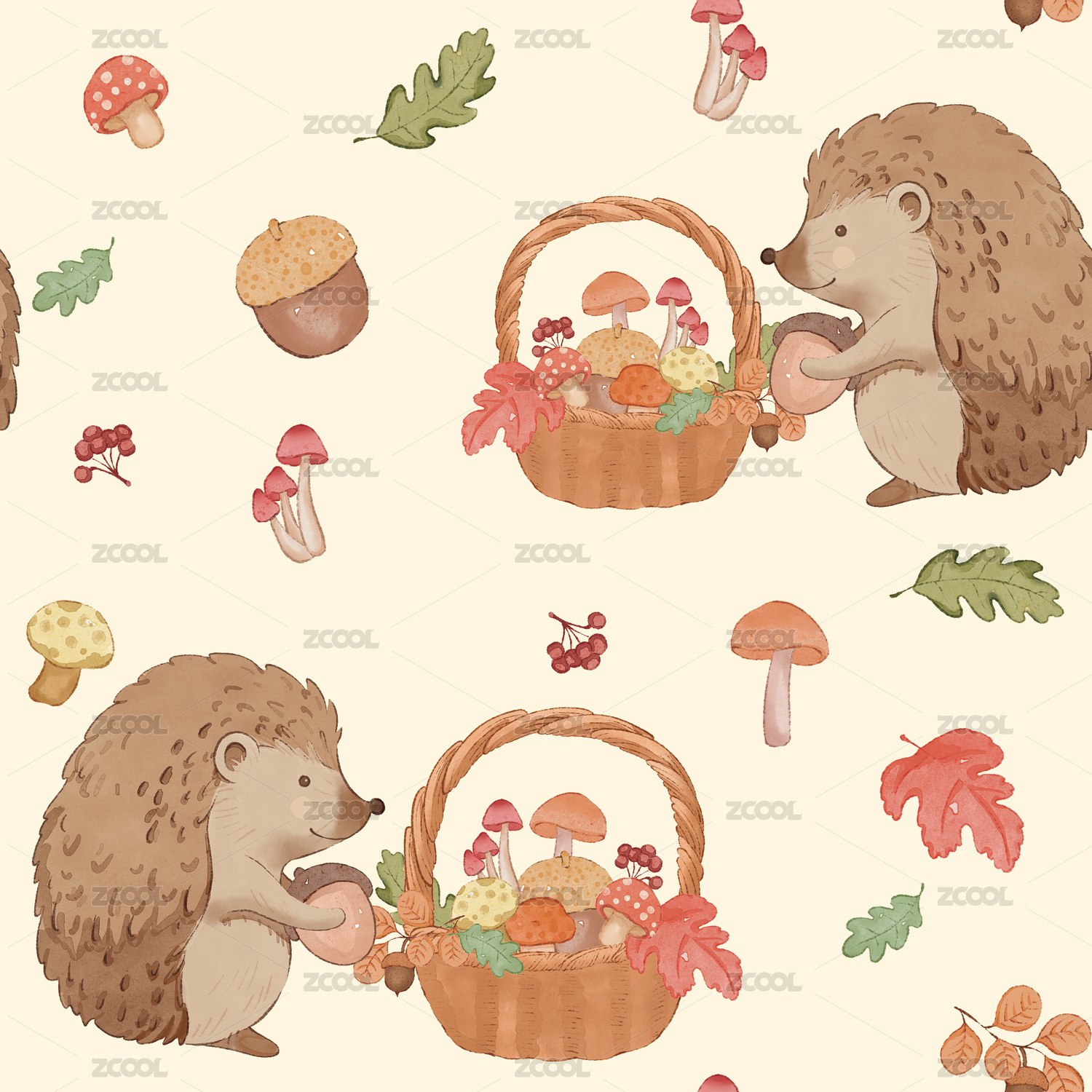 秋天刺猬采摘豐收果實(shí)藍(lán)子