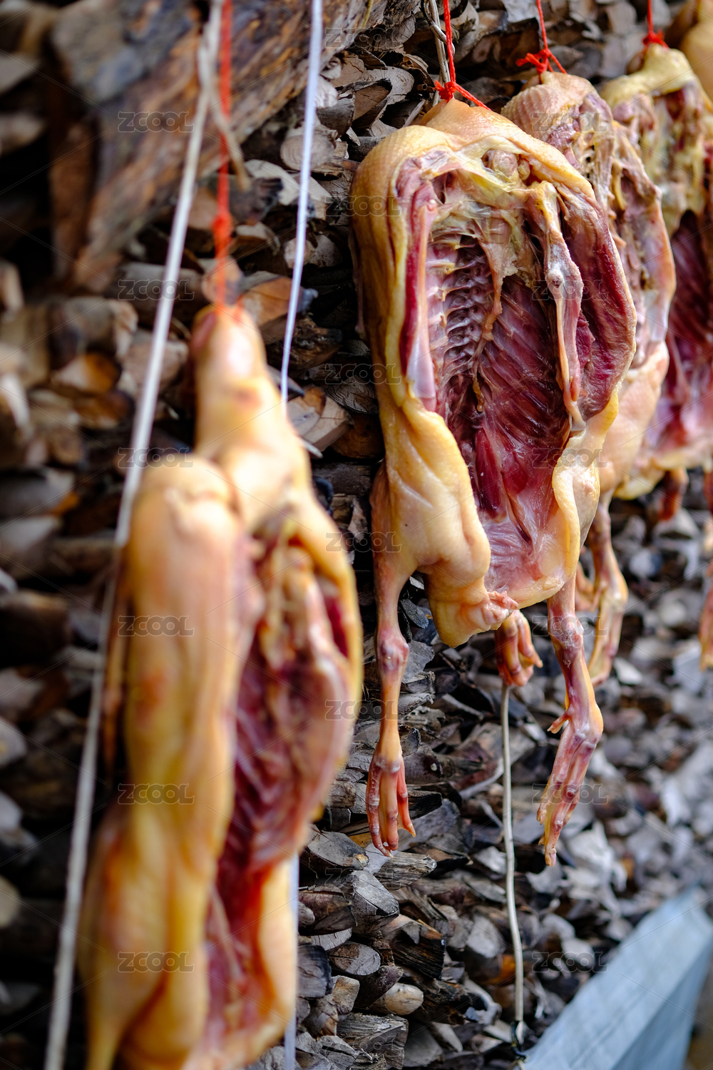 柴火堆上掛著的腌咸鴨