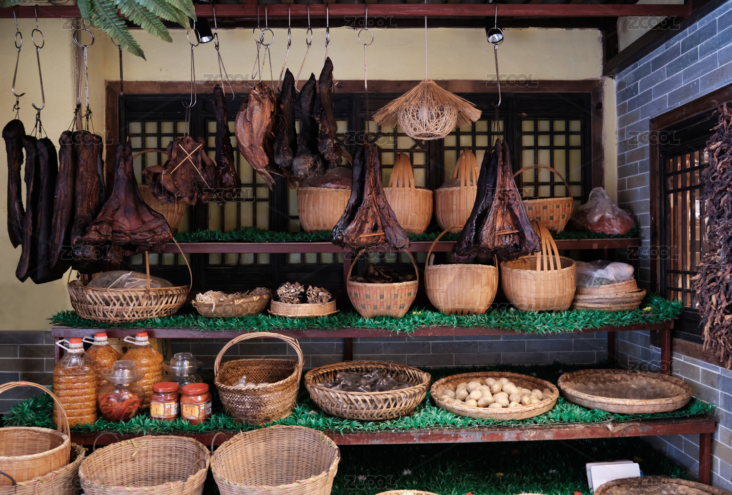 農家掛著的各種臘貨等土特產(chǎn)